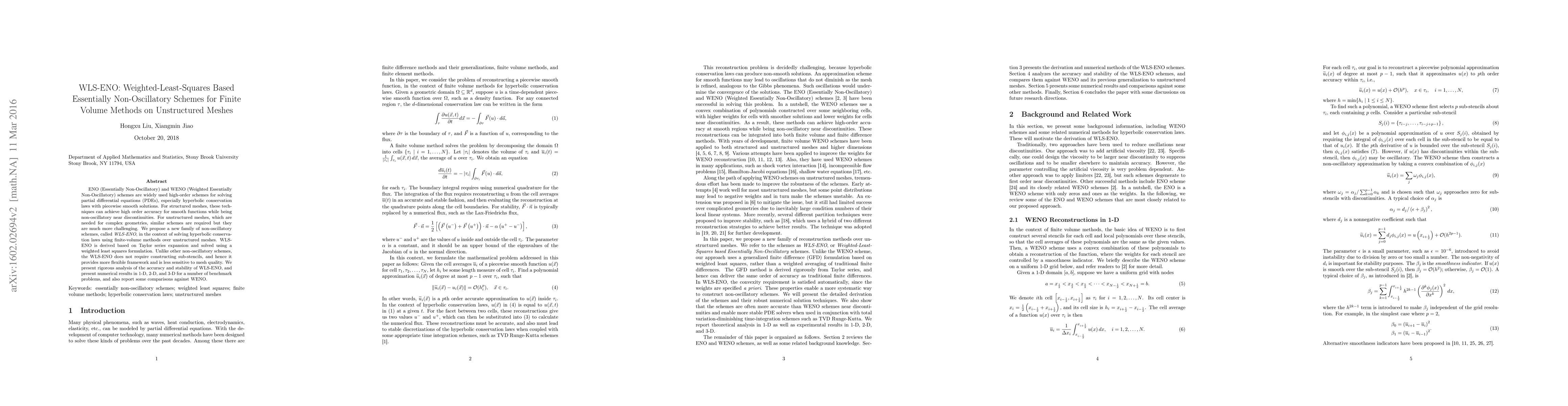 ENO (Essentially Non-Oscillatory) and WENO (Weighted Essentially Non-Oscillatory) schemes are widely used high-order schemes for solving partial differential equations (PDEs), especially hyperbolic conservation laws with piecewise smooth solutions. For structured meshes, these techniques can achieve high order accuracy for smooth functions while being non-oscillatory near discontinuities. For unstructured meshes, which are needed for complex geometries, similar schemes are required but they are much more challenging. We propose a new family of non-oscillatory schemes, called WLS-ENO, in the context of solving hyperbolic conservation laws using finite-volume methods over unstructured meshes. WLS-ENO is derived based on Taylor series expansion and solved using a weighted least squares formulation. Unlike other non-oscillatory schemes, the WLS-ENO does not require constructing sub-stencils, and hence it provides more flexible framework and is less sensitive to mesh quality. We present rigorous analysis of the accuracy and stability of WLS-ENO, and present numerical results in 1-D, 2-D, and 3-D for a number of benchmark problems, and also report some comparisons against WENO.