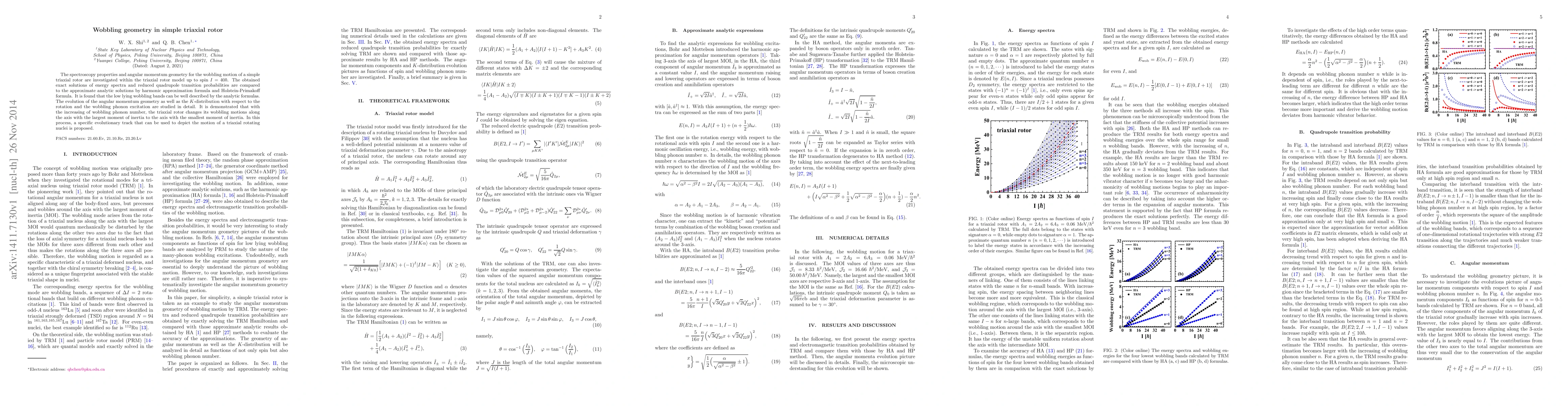 The spectroscopy properties and angular momentum geometry for the wobbling motion of a simple triaxial rotor are investigated within the triaxial rotor model up to spin $I=40\hbar$. The obtained exact solutions of energy spectra and reduced quadrupole transition probabilities are compared to the approximate analytic solutions by harmonic approximation formula and Holstein-Primakoff formula. It is found that the low lying wobbling bands can be well described by the analytic formulas. The evolution of the angular momentum geometry as well as the $K$-distribution with respect to the rotation and the wobbling phonon excitation are studied in detail. It is demonstrated that with the increasing of wobbling phonon number, the triaxial rotor changes its wobbling motions along the axis with the largest moment of inertia to the axis with the smallest moment of inertia. In this process, a specific evolutionary track that can be used to depict the motion of a triaxial rotating nuclei is proposed.