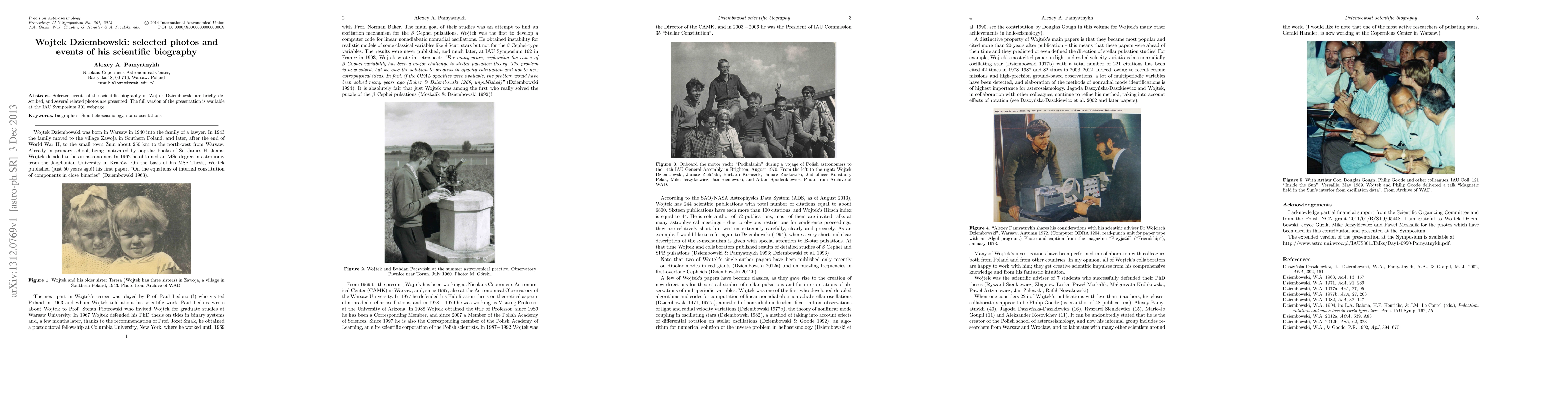 Summary: This paper briefly outlines key events in the scientific biography of Wojtek Dziembowski and includes several related photos. For a comprehensive version, visit the IAU Symposium 301 webpage.