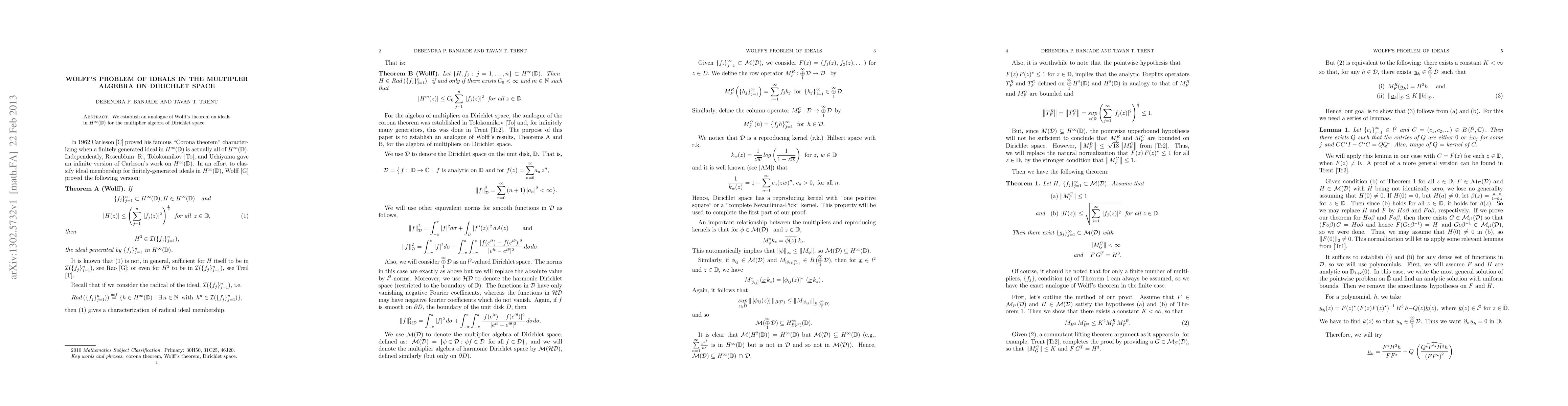 Summary: This paper establishes an analogue of Wolff's theorem concerning ideals in the multiplier algebra of the Dirichlet space, extending the results from the bounded analytic functions on the unit disk.