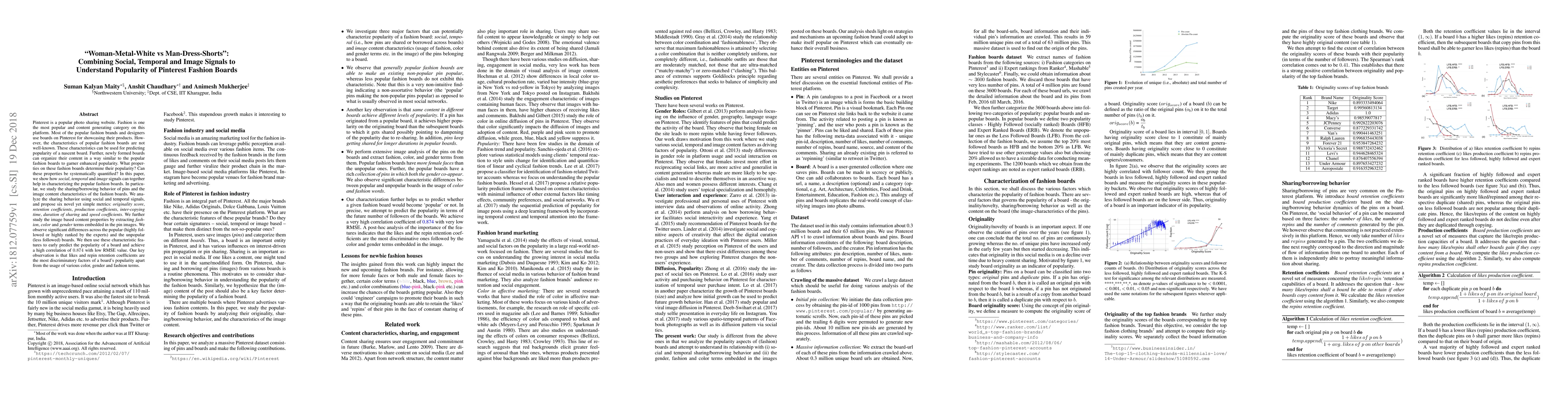 Pinterest is a popular photo sharing website. Fashion is one the most popular and content generating category on this platform. Most of the popular fashion brands and designers use boards on Pinterest for showcasing their products. However, the characteristics of popular fashion boards are not well-known. These characteristics can be used for predicting popularity of a nascent board. Further, newly formed boards can organize their content in a way similar to the popular fashion boards to garner enhanced popularity. What properties on these fashion boards determine their popularity? Can these properties be systematically quantified? In this paper, we show how social, temporal and image signals can together help in characterizing the popular fashion boards. In particular, we study the sharing/borrowing behavior of pins and the image content characteristics of the fashion boards. We analyze the sharing behavior using social and temporal signals, and propose six novel yet simple metrics: originality score, retention coefficients, production coefficients, inter-copying time, duration of sharing and speed coefficients. We further study the image based content properties by extracting fashion, color and gender terms embedded in the pin images. We observe significant differences across the popular (highly followed or highly ranked by the experts) and the unpopular (less followed) boards. We then use these characteristic features to early predict the popularity of a board and achieve a high correlation of 0.874 with low RMSE value. Our key observation is that likes and repin retention coefficients are the most discriminatory factors of a board's popularity apart from the usage of various color, gender and fashion terms.