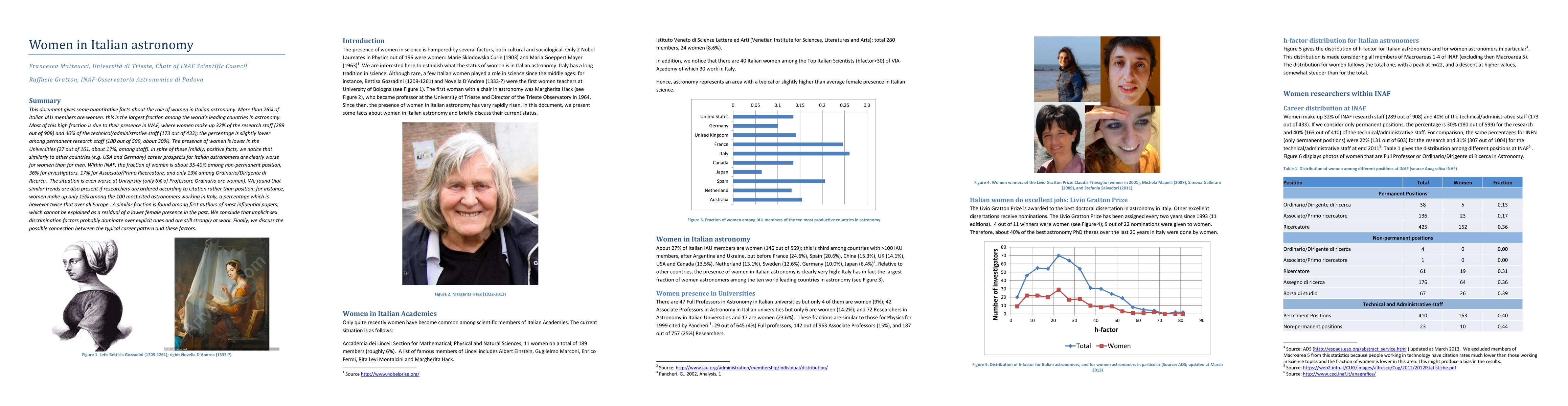 This paper highlights the significant presence of women in Italian astronomy, with over 26% of IAU members being female, particularly within INAF. However, despite this representation, women face worse career prospects and lower citation rates compared to men, indicating implicit sex discrimination.
