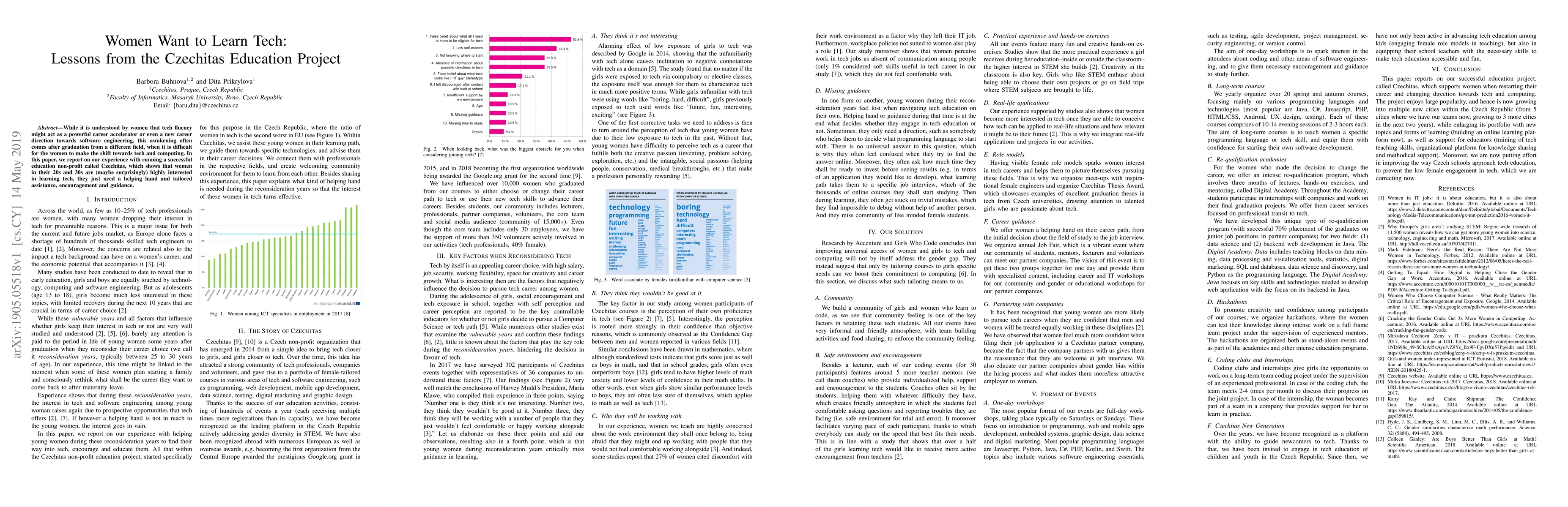 This paper discusses the Czechitas Education Project, which successfully engages women in their 20s and 30s in learning tech, demonstrating that with tailored assistance, encouragement, and guidance, women show a strong interest in tech despite often needing help to transition from other fields.