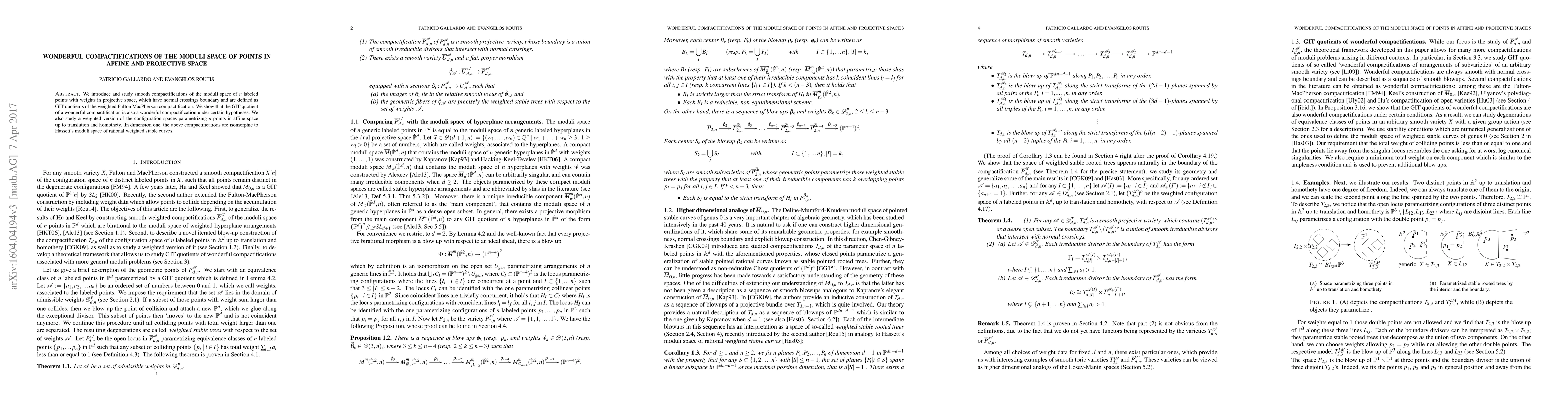 This paper introduces smooth compactifications of the moduli space of n labeled points in projective space with normal crossings boundaries, defined via GIT quotients. It proves that these wonderful compactifications remain so under certain conditions and examines their affine counterparts, linking them to Hassett's moduli space in dimension one.