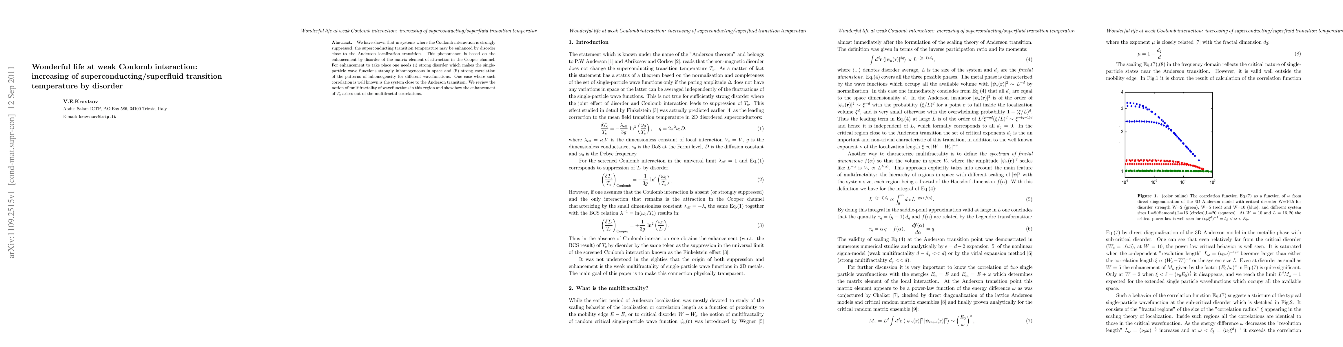 Researchers found that adding disorder to a system with weak Coulomb interaction can actually increase its superconducting transition temperature. This occurs due to the correlation of disorder patterns among different wavefunctions.