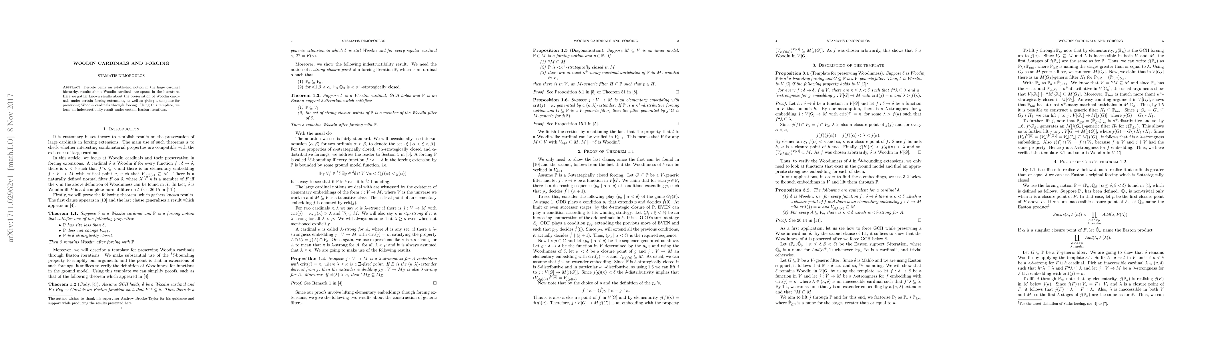 Despite being an established notion in the large cardinal hierarchy, results about Woodin cardinals are sparse in the literature. Here we gather known results about the preservation of Woodin cardinals under certain forcing extensions, as well as giving a template for preserving Woodin cardinals through forcing. Using this template, we form an indestructibility result under certain Easton iterations.