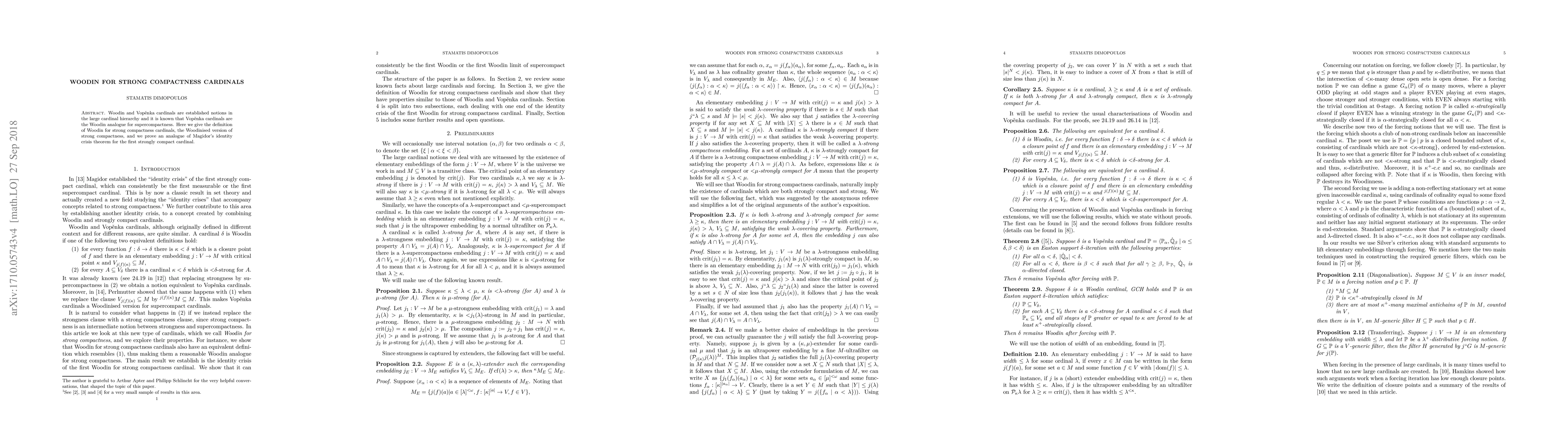 Summary: This paper introduces the concept of Woodin for strong compactness cardinals, a refined version of strong compactness, and demonstrates an analogue of Magidor's identity crisis theorem for the initial strongly compact cardinal.