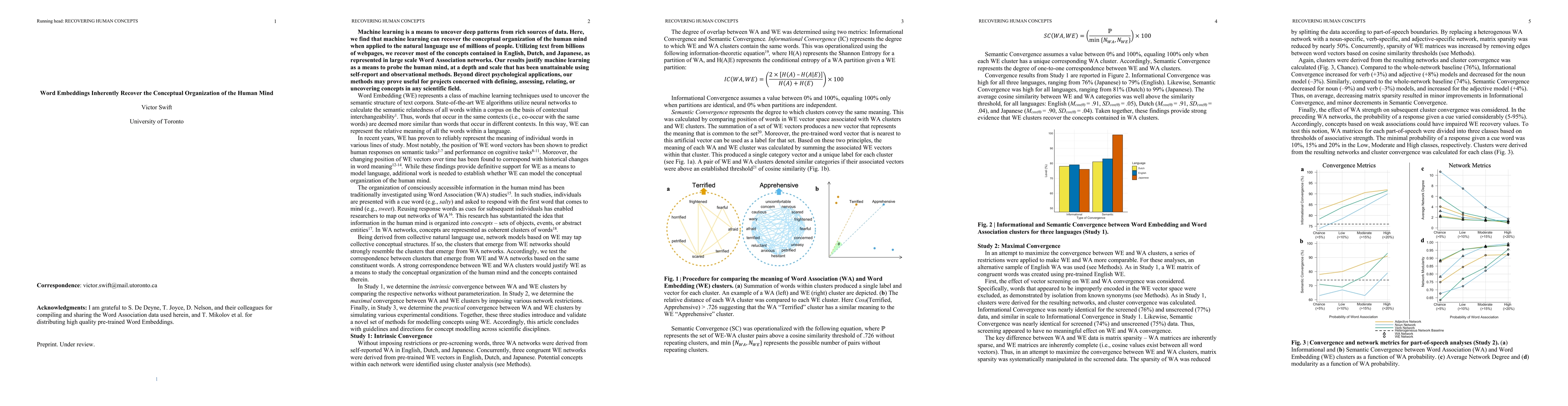 Machine learning is a means to uncover deep patterns from rich sources of data. Here, we find that machine learning can recover the conceptual organization of the human mind when applied to the natural language use of millions of people. Utilizing text from billions of webpages, we recover most of the concepts contained in English, Dutch, and Japanese, as represented in large scale Word Association networks. Our results justify machine learning as a means to probe the human mind, at a depth and scale that has been unattainable using self-report and observational methods. Beyond direct psychological applications, our methods may prove useful for projects concerned with defining, assessing, relating, or uncovering concepts in any scientific field.