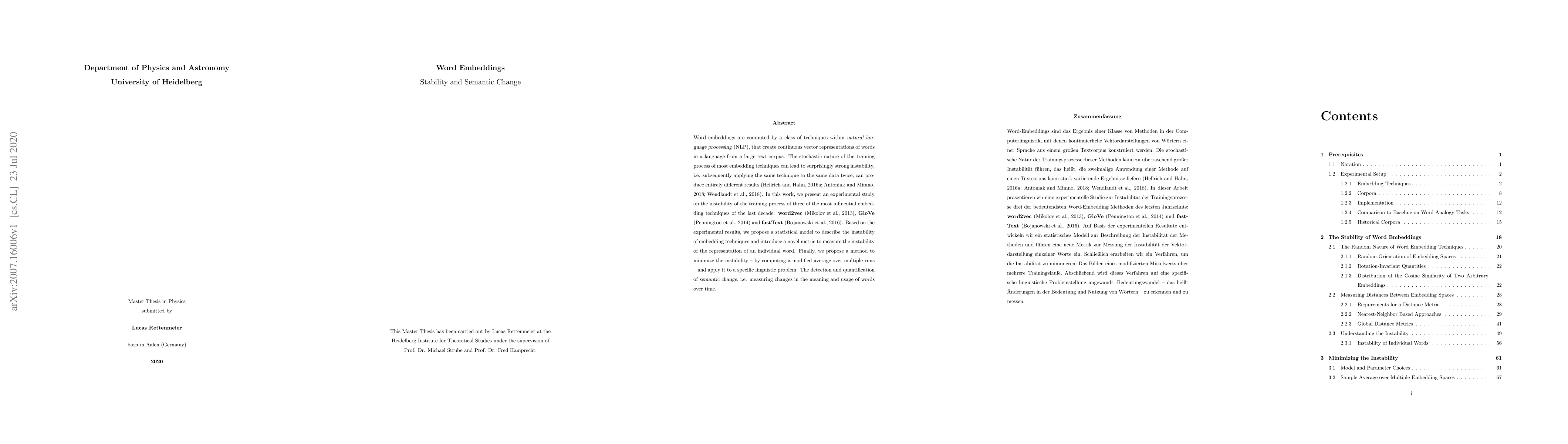 Researchers studied instability in word embeddings, a technique used to represent words as vectors, and proposed a model and metric to measure this instability. They also introduced a method to minimize instability and applied it to detecting semantic change in words over time.