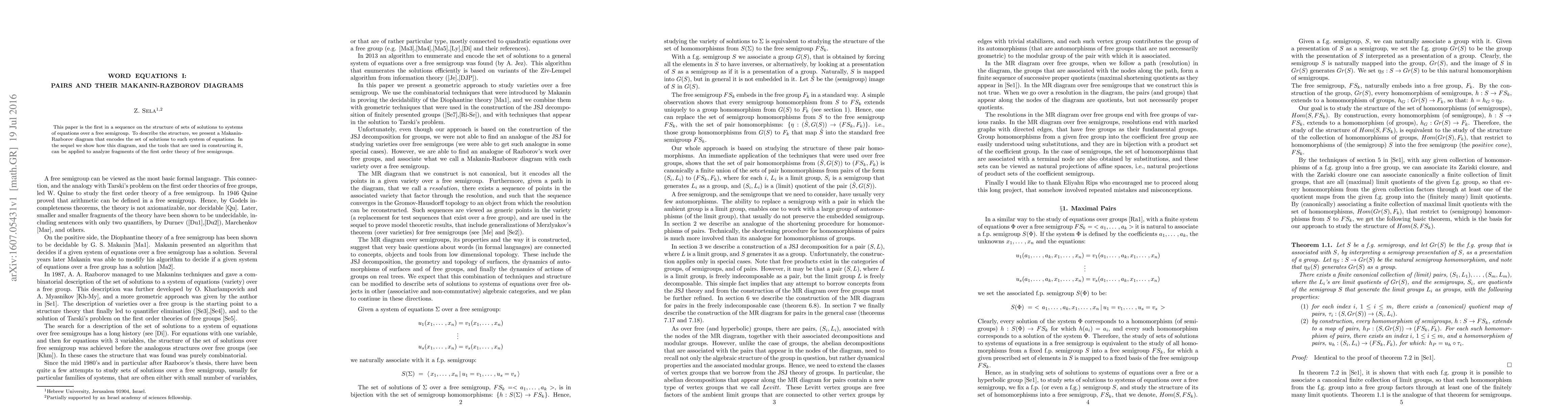This paper introduces Makanin-Razborov diagrams to encode solutions to systems of word equations over a free semigroup, laying the groundwork for subsequent analyses of the first-order theory of free semigroups. Future work will explore applications of these diagrams in this theoretical context.