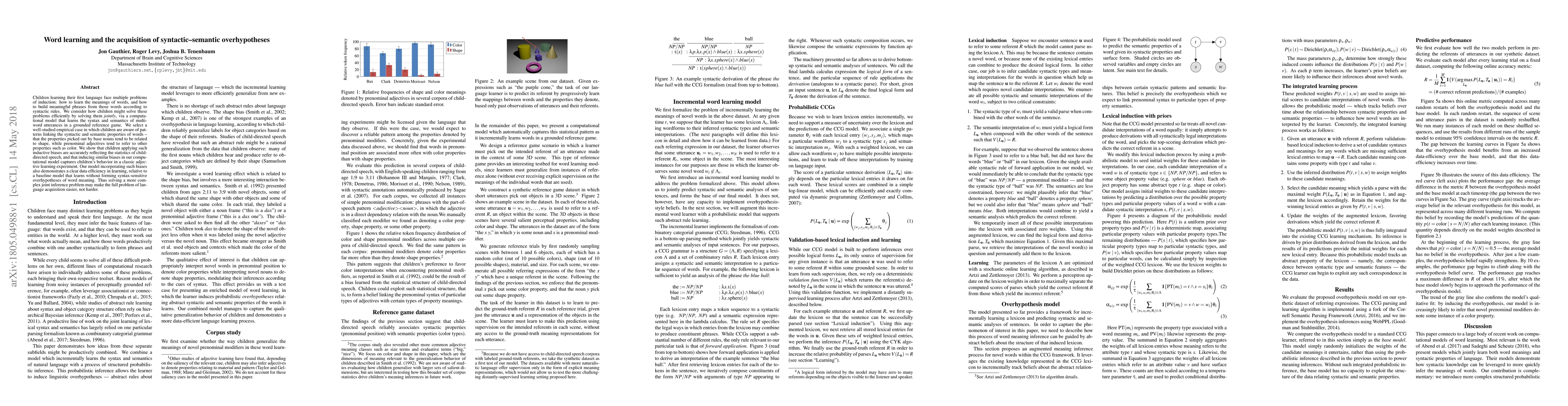 Children learning their first language face multiple problems of induction: how to learn the meanings of words, and how to build meaningful phrases from those words according to syntactic rules. We consider how children might solve these problems efficiently by solving them jointly, via a computational model that learns the syntax and semantics of multi-word utterances in a grounded reference game. We select a well-studied empirical case in which children are aware of patterns linking the syntactic and semantic properties of words --- that the properties picked out by base nouns tend to be related to shape, while prenominal adjectives tend to refer to other properties such as color. We show that children applying such inductive biases are accurately reflecting the statistics of child-directed speech, and that inducing similar biases in our computational model captures children's behavior in a classic adjective learning experiment. Our model incorporating such biases also demonstrates a clear data efficiency in learning, relative to a baseline model that learns without forming syntax-sensitive overhypotheses of word meaning. Thus solving a more complex joint inference problem may make the full problem of language acquisition easier, not harder.