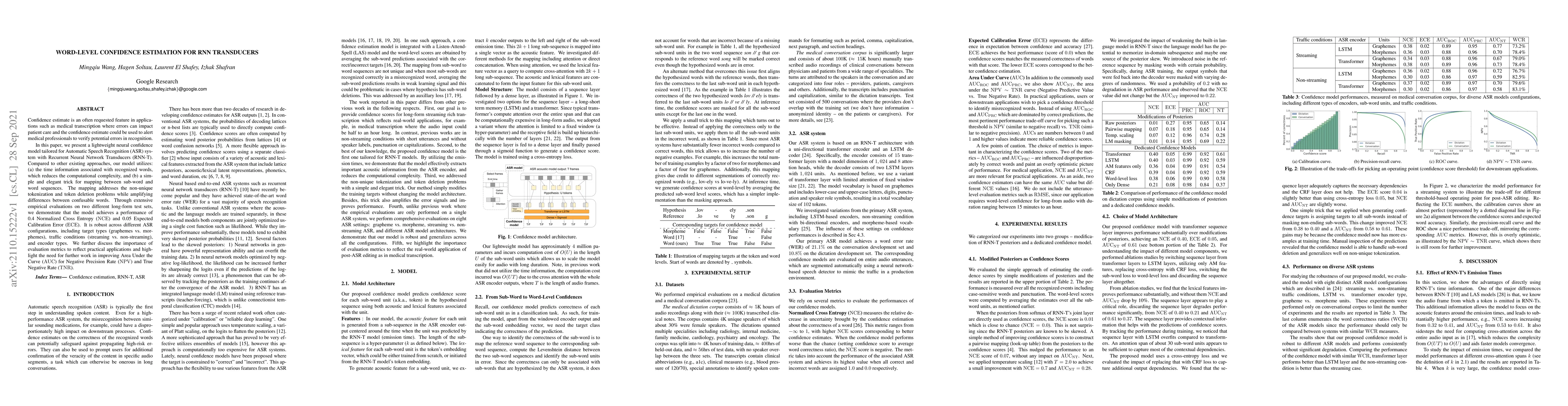 Confidence estimate is an often requested feature in applications such as medical transcription where errors can impact patient care and the confidence estimate could be used to alert medical professionals to verify potential errors in recognition. In this paper, we present a lightweight neural confidence model tailored for Automatic Speech Recognition (ASR) system with Recurrent Neural Network Transducers (RNN-T). Compared to other existing approaches, our model utilizes: (a) the time information associated with recognized words, which reduces the computational complexity, and (b) a simple and elegant trick for mapping between sub-word and word sequences. The mapping addresses the non-unique tokenization and token deletion problems while amplifying differences between confusable words. Through extensive empirical evaluations on two different long-form test sets, we demonstrate that the model achieves a performance of 0.4 Normalized Cross Entropy (NCE) and 0.05 Expected Calibration Error (ECE). It is robust across different ASR configurations, including target types (graphemes vs. morphemes), traffic conditions (streaming vs. non-streaming), and encoder types. We further discuss the importance of evaluation metrics to reflect practical applications and highlight the need for further work in improving Area Under the Curve (AUC) for Negative Precision Rate (NPV) and True Negative Rate (TNR).