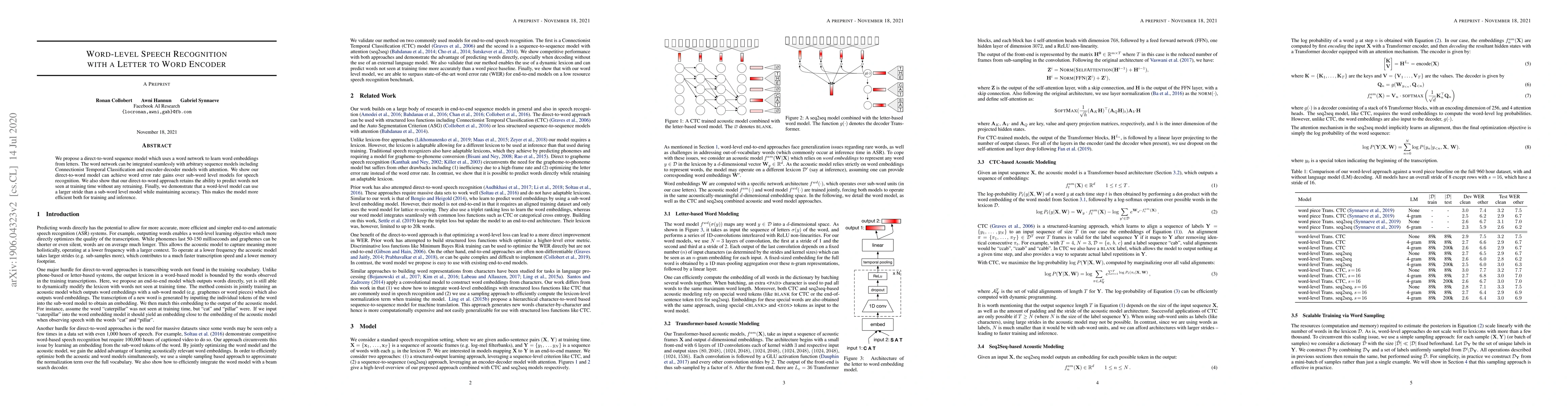 This paper proposes a direct-to-word sequence model that uses a word network to learn word embeddings from letters, achieving better word error rates than sub-word models. It also demonstrates the model's efficiency and ability to predict unseen words without retraining.