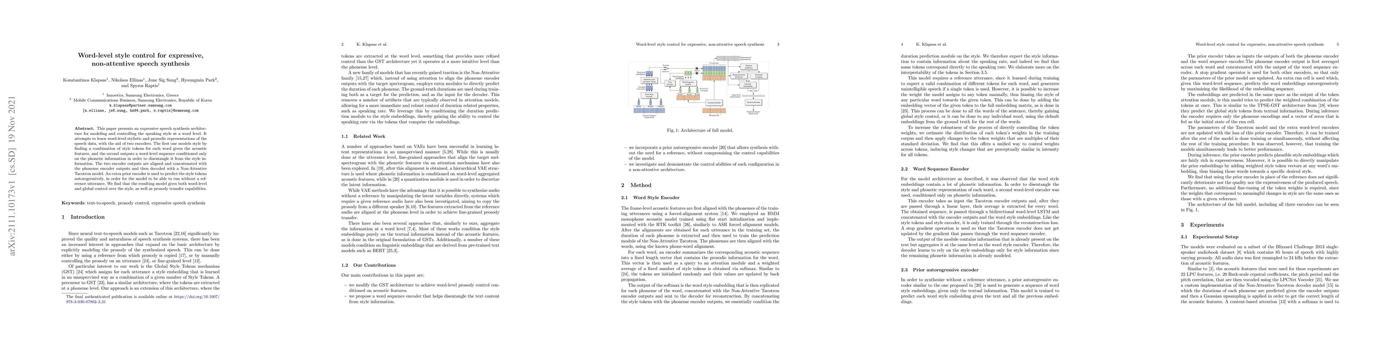 This paper introduces a speech synthesis model that enables expressive, non-attentive speech with word-level style control, utilizing two encoders to disentangle style and phonetic information, and a Non-Attentive Tacotron for decoding. The model achieves both word-level and global style control, along with prosody transfer.