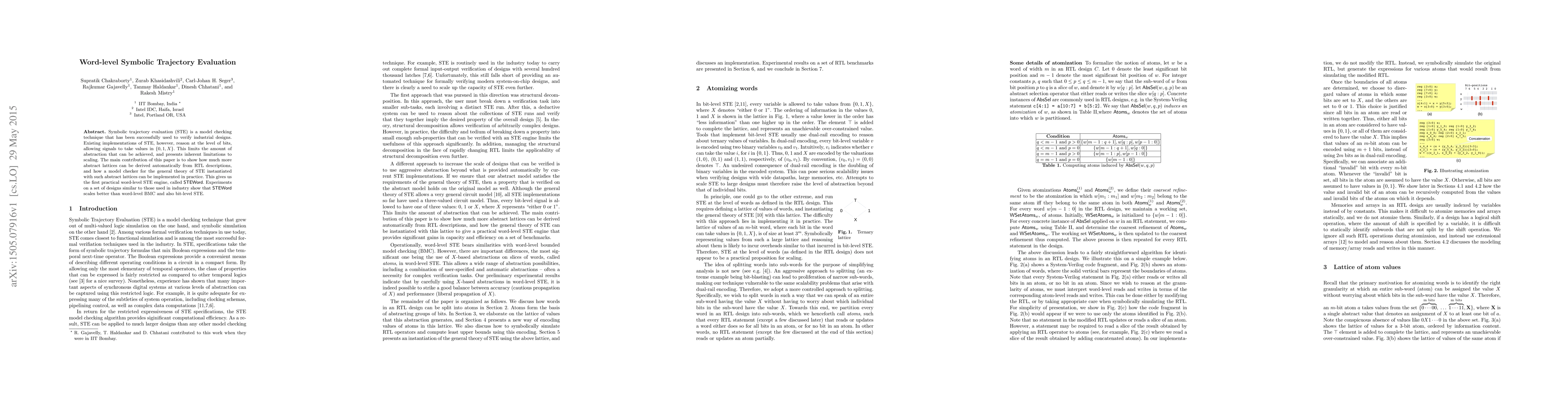 This paper introduces STEWord, a practical word-level symbolic trajectory evaluation engine that enhances abstraction over bit-level implementations, demonstrating better scalability compared to both word-level bounded model checking and bit-level STE. The method derives abstract lattices from RTL descriptions to achieve more scalable model checking.