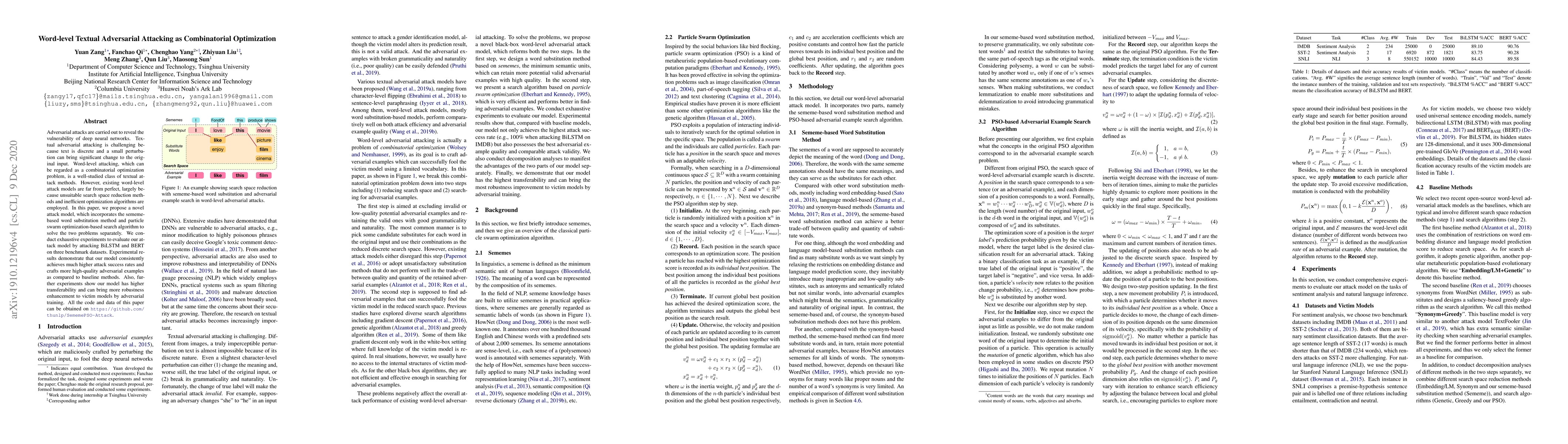 This paper proposes a novel word-level textual adversarial attack model that uses sememe-based word substitution and particle swarm optimization to improve attack efficiency and success rates. Experiments show it outperforms baselines on BiLSTM and BERT models, demonstrating higher attack success rates, better adversarial example quality, transferability, and robustness enhancement through adversarial training.