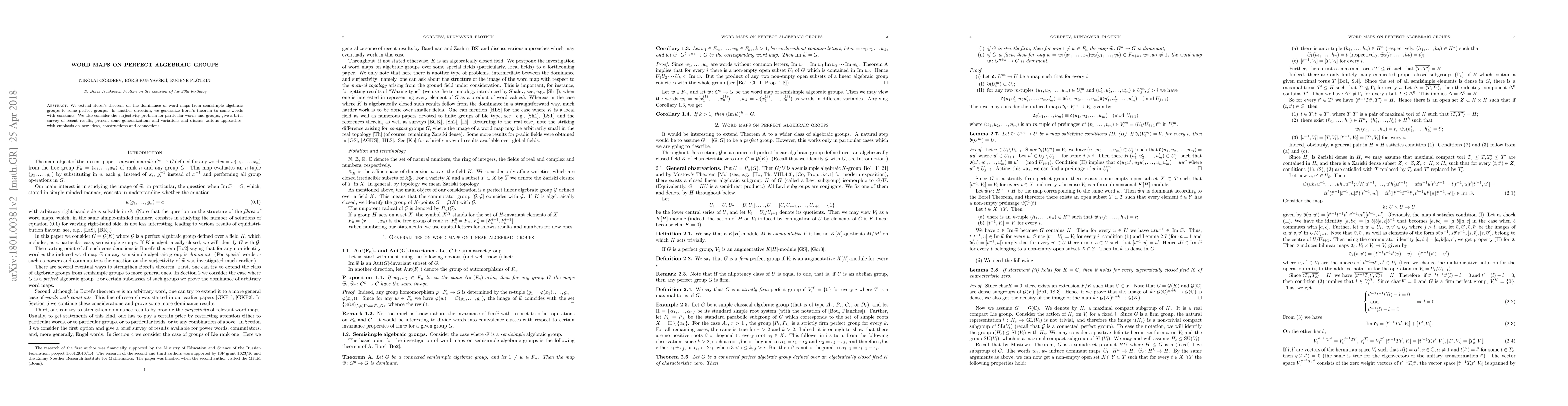 This paper extends Borel's dominance theorem on word maps from semisimple to certain perfect algebraic groups, and generalizes it to words with constants. It surveys recent results, presents new generalizations, and discusses various approaches with a focus on innovative ideas and constructions.