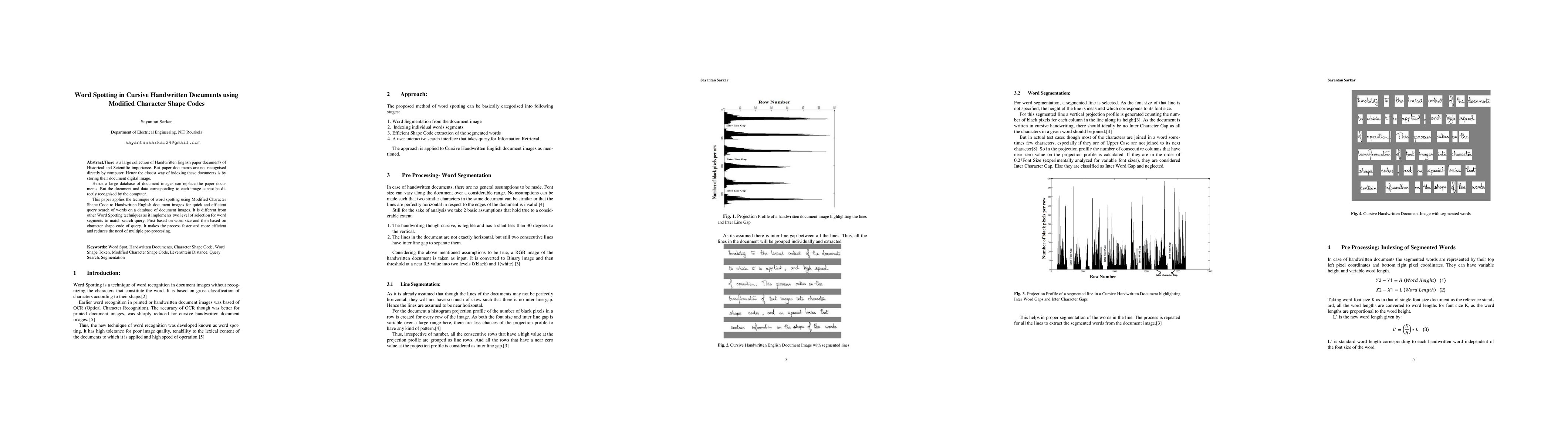 The paper presents a Modified Character Shape Code algorithm tailored for cursive handwritten document images, improving upon the original Character Shape Coding method by A.L. Spitz.