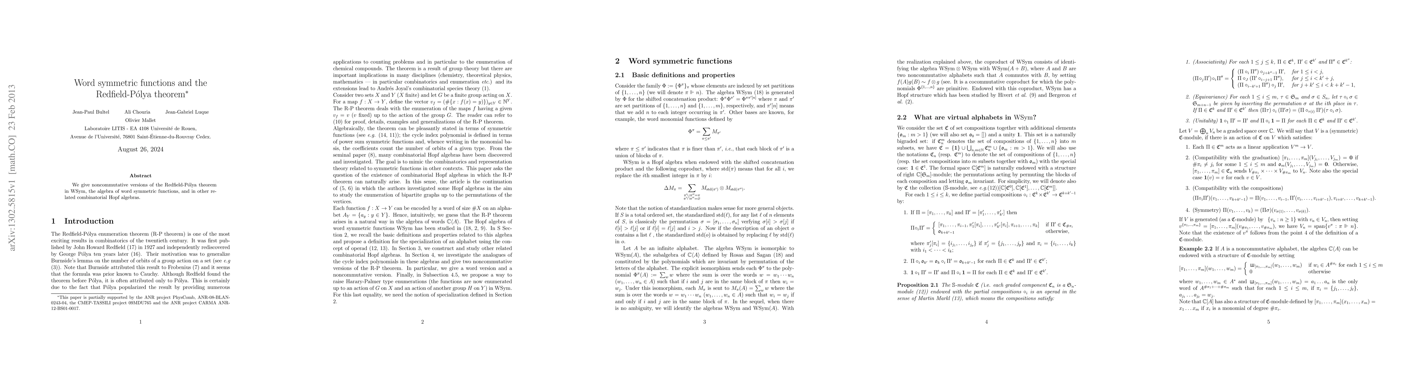This paper presents noncommutative adaptations of the Redfield-Pólya theorem within the algebra of word symmetric functions (WSym) and other combinatorial Hopf algebras, extending combinatorial enumeration techniques.
