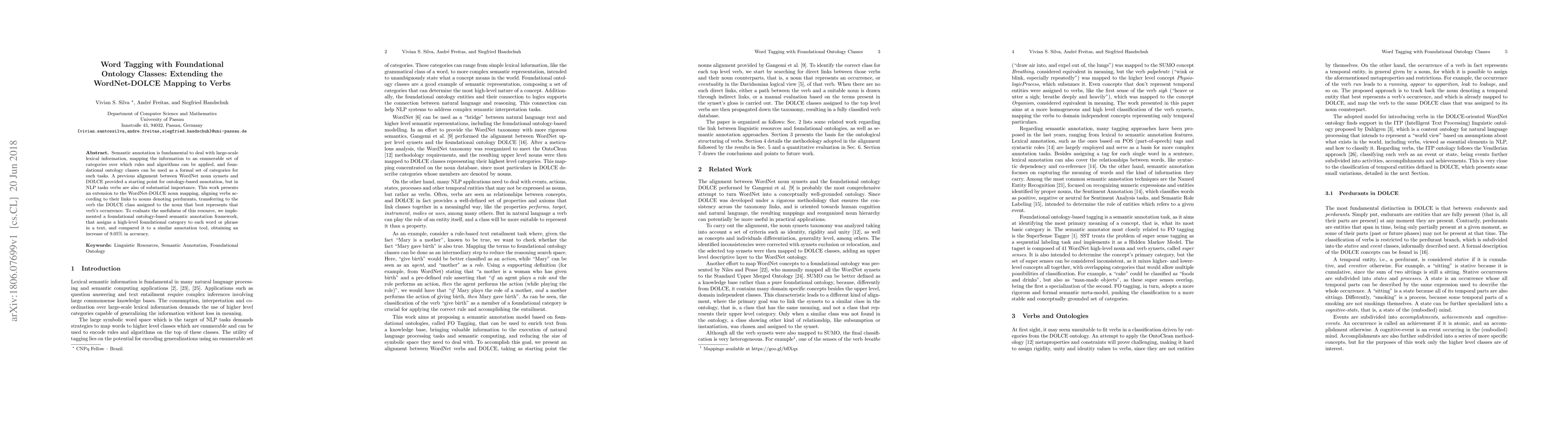 This paper extends the WordNet-DOLCE noun mapping to verbs, aligning them based on their connections to nouns representing perdurants, and evaluates the effectiveness of this approach using a semantic annotation framework, achieving a 9.05% accuracy improvement over a comparable tool.