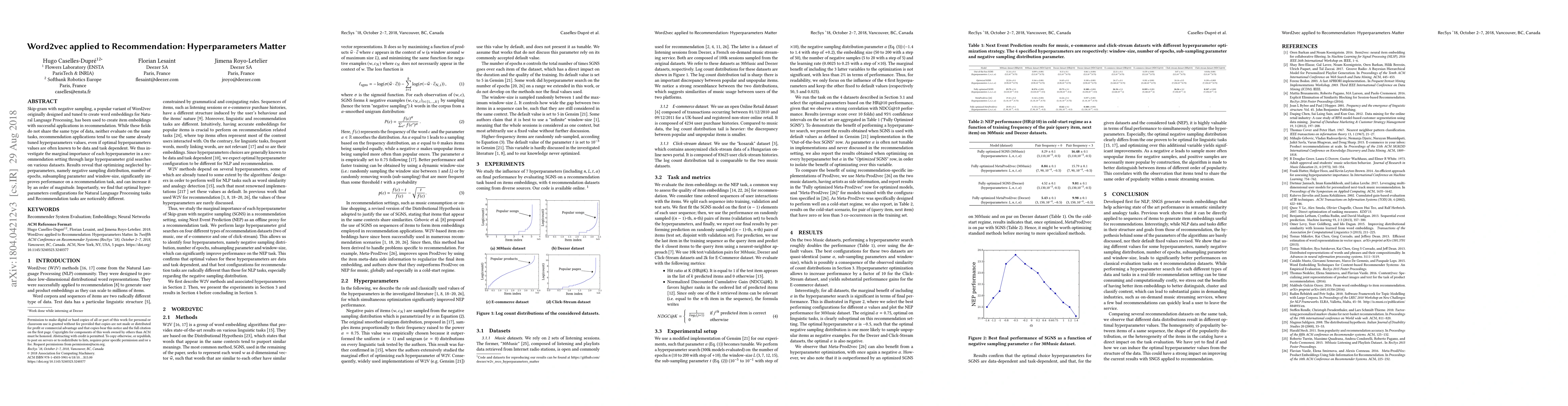 Using Word2Vec on recommendation tasks reveals that hyperparameters such as negative sampling distribution, epochs, subsampling parameter, and window size have a significant impact on performance, improving it by an order of magnitude.