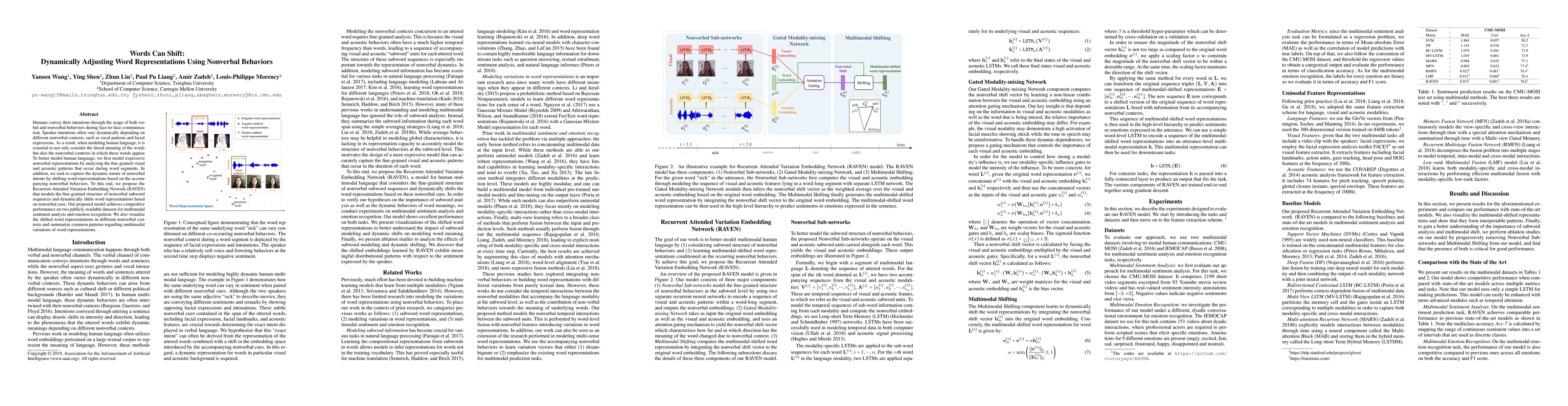This paper proposes the Recurrent Attended Variation Embedding Network (RAVEN) to dynamically adjust word representations based on accompanying nonverbal behaviors, enhancing the modeling of human language. The model achieves competitive results on multimodal sentiment analysis and emotion recognition datasets.