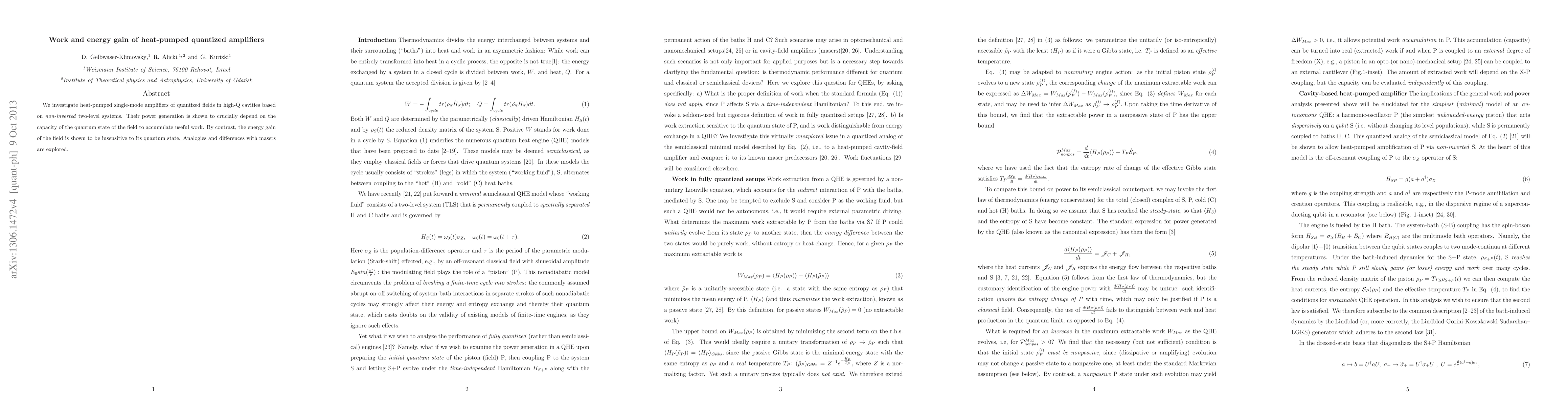 Researchers explored heat-pumped single-mode amplifiers that generate power based on a quantum field's ability to accumulate useful work, but not its energy gain. This finding has implications for understanding the behavior of quantized fields in high-Q cavities.