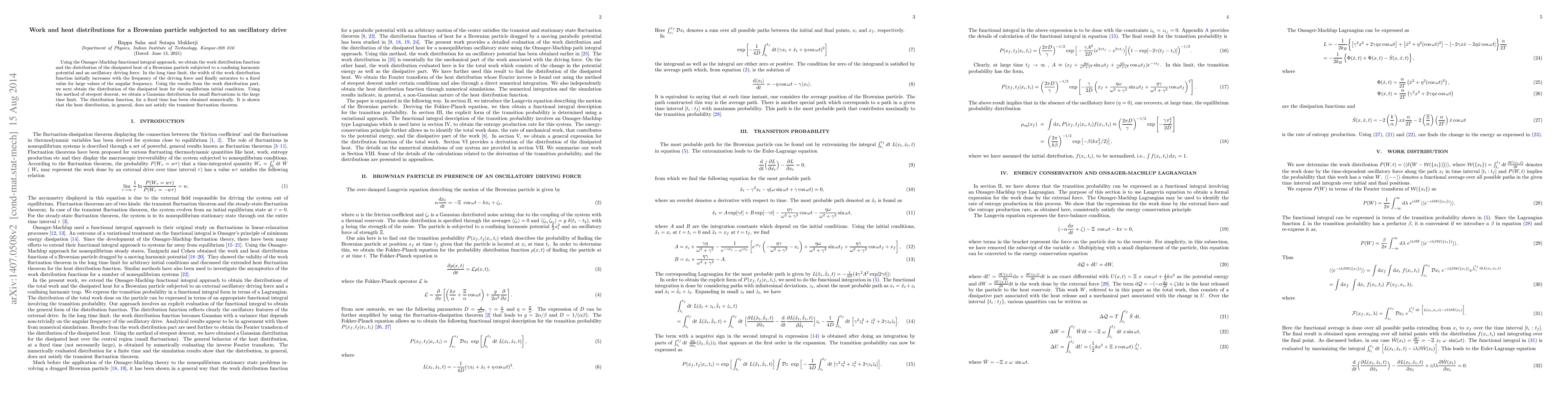 A study uses Brownian motion to model a particle driven by an oscillatory force, finding that the work distribution initially increases with frequency but eventually saturates, while heat distribution doesn't follow the transient fluctuation theorem.