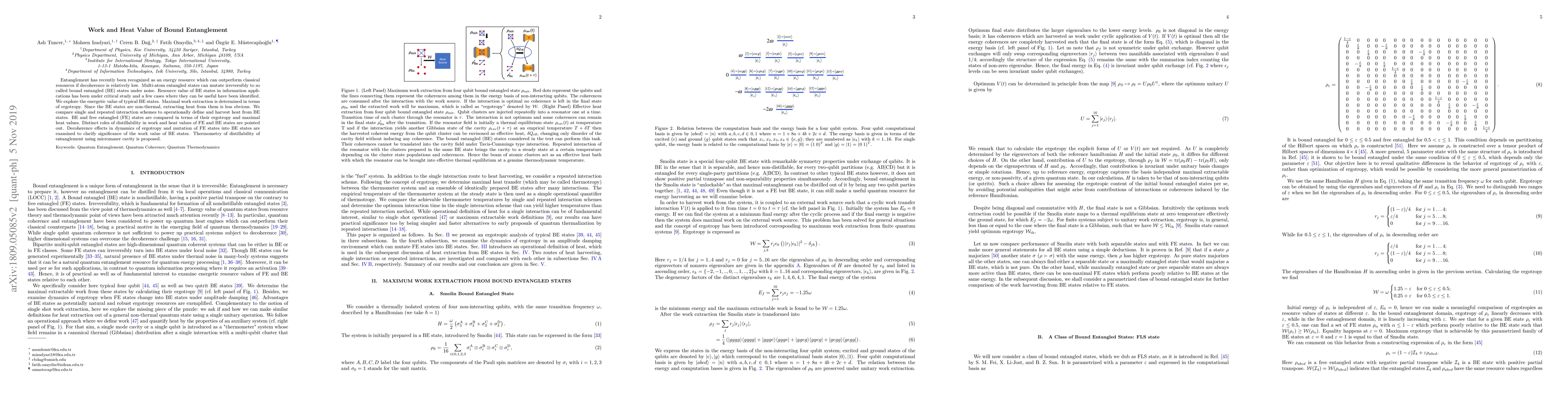 Entanglement has recently been recognized as an energy resource which can outperform classical resources if decoherence is relatively low. Multi-atom entangled states can mutate irreversibly to so called bound entangled (BE) states under noise. Resource value of BE states in information applications has been under critical study and a few cases where they can be useful have been identified. We explore the energetic value of typical BE states. Maximal work extraction is determined in terms of ergotropy. Since the BE states are non-thermal, extracting heat from them is less obvious. We compare single and repeated interaction schemes to operationally define and harvest heat from BE states. BE and free entangled (FE) states are compared in terms of their ergotropy and maximal heat values. Distinct roles of distillability in work and heat values of FE and BE states are pointed out. Decoherence effects in dynamics of ergotropy and mutation of FE states into BE states are examined to clarify significance of the work value of BE states. Thermometry of distillability of entanglement using micromaser cavity is proposed.