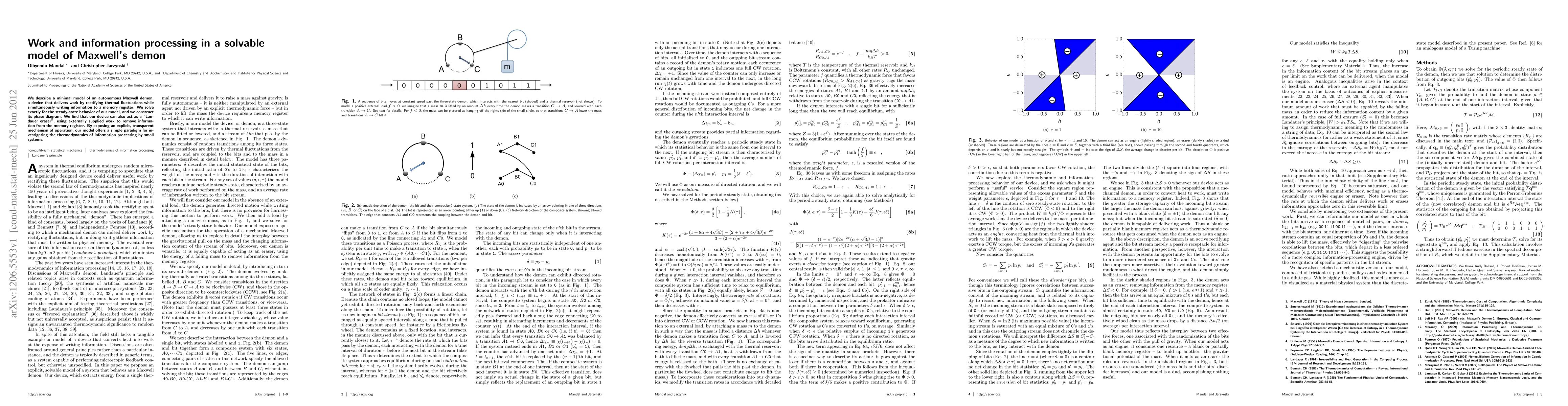 We describe a minimal model of an autonomous Maxwell demon, a device that delivers work by rectifying thermal fluctuations while simultaneously writing information to a memory register. We solve exactly for the steady-state behavior of our model, and we construct its phase diagram. We find that our device can also act as a "Landauer eraser", using externally supplied work to remove information from the memory register. By exposing an explicit, transparent mechanism of operation, our model offers a simple paradigm for investigating the thermodynamics of information processing by small systems.