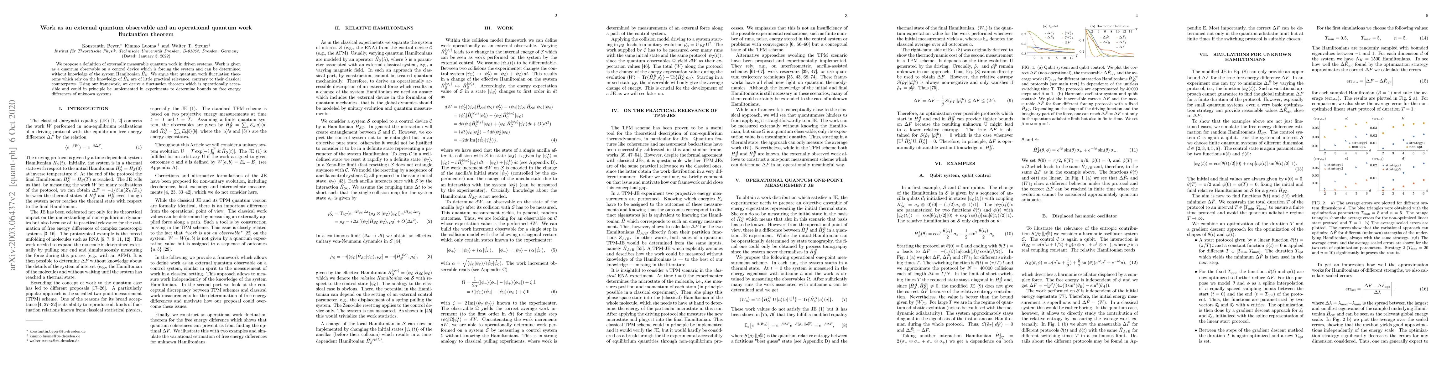 This paper proposes a definition of externally measurable quantum work in driven systems, independent of the system Hamiltonian, and introduces an operational quantum work fluctuation theorem that can be practically implemented in experiments. This framework aims to determine bounds on free energy differences for unknown systems.