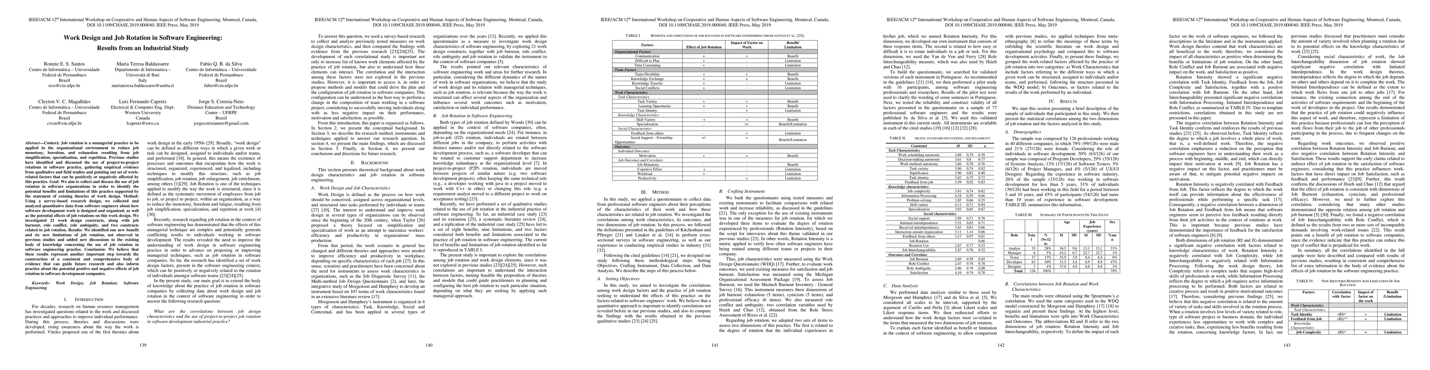 Job rotation is a managerial practice to be applied in the organizational environment to reduce job monotony, boredom, and exhaustion resulting from job simplification, specialization, and repetition. Previous studies have identified and discussed the use of project-to-project rotations in software practice, gathering empirical evidence from qualitative and field studies and pointing out set of work-related factors that can be positively or negatively affected by this practice. Goal: We aim to collect and discuss the use of job rotation in software organizations in order to identify the potential benefits and limitations of this practice supported by the statement of existing theories of work design. Method: Using a survey-based research design, we collected and analyzed quantitative data from software engineers about how software development work is designed and organized, as well as the potential effects of job rotations on this work design. We investigated 21 work design constructs, along with job burnout, role conflict, role ambiguity, and two constructs related to job rotation. Results: We identified one new benefit and six new limitations of job rotation, not observed in previous studies and added new discussions to the existing body of knowledge concerning the use of job rotation in software engineering practice. Conclusion: We believe that these results represent another important step towards the construction of a consistent and comprehensive body of evidence that can guide future research and also inform practice about the potential positive and negative effects of job rotation in software development companies.