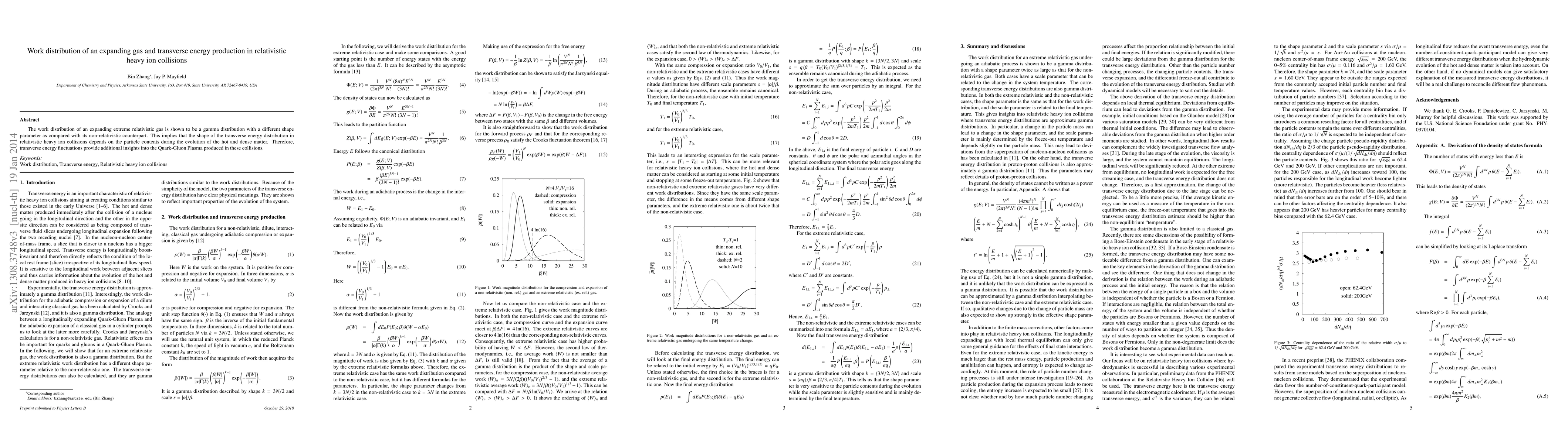 This paper demonstrates that the work distribution in an expanding relativistic gas follows a gamma distribution distinct from its non-relativistic form, influencing the transverse energy distribution in relativistic heavy ion collisions. This relationship offers deeper insights into the Quark-Gluon Plasma through transverse energy fluctuations.