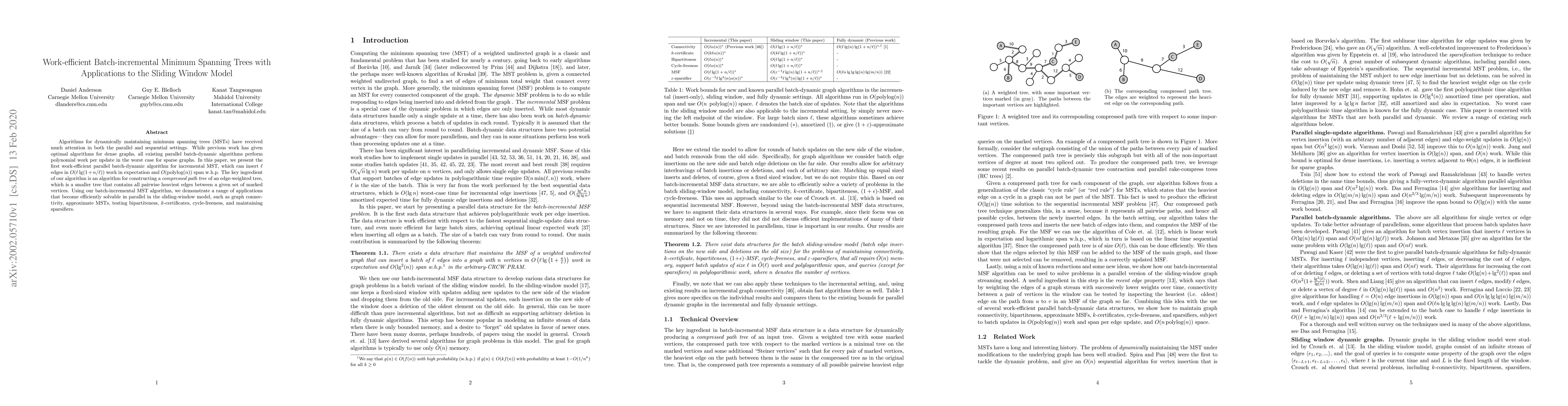 This paper introduces a novel work-efficient parallel batch-dynamic algorithm for incrementally maintaining minimum spanning trees (MSTs) in sparse graphs, achieving $O(\ell \log(1+n/\ell))$ expected work for inserting $\ell$ edges and polylogarithmic span with high probability. The algorithm also enables efficient parallel solutions for various graph problems in the sliding-window model.