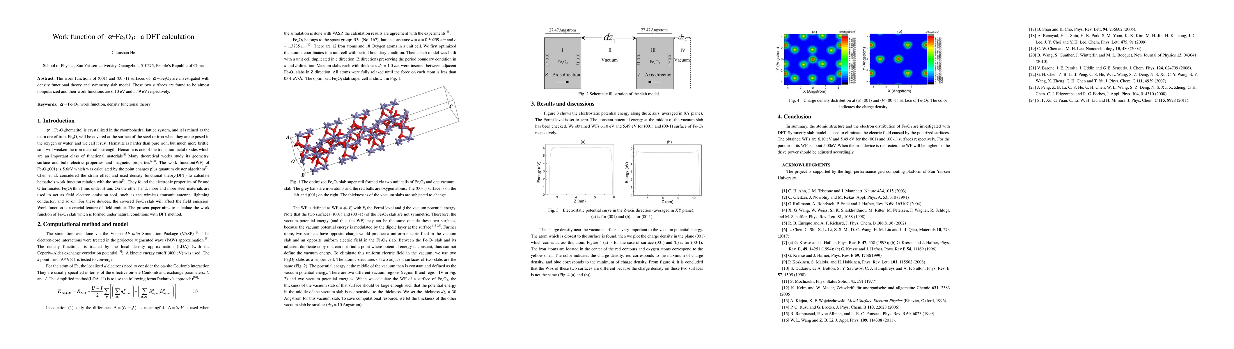 The work functions of (001) and (00 -1) surfaces of {\alpha}-Fe_{2}O_{3} are investigated with density functional theory and symmetry slab model. These two surfaces are found to be almost nonpolarized and their work functions are 6.10 eV and 5.49 eV respectively.