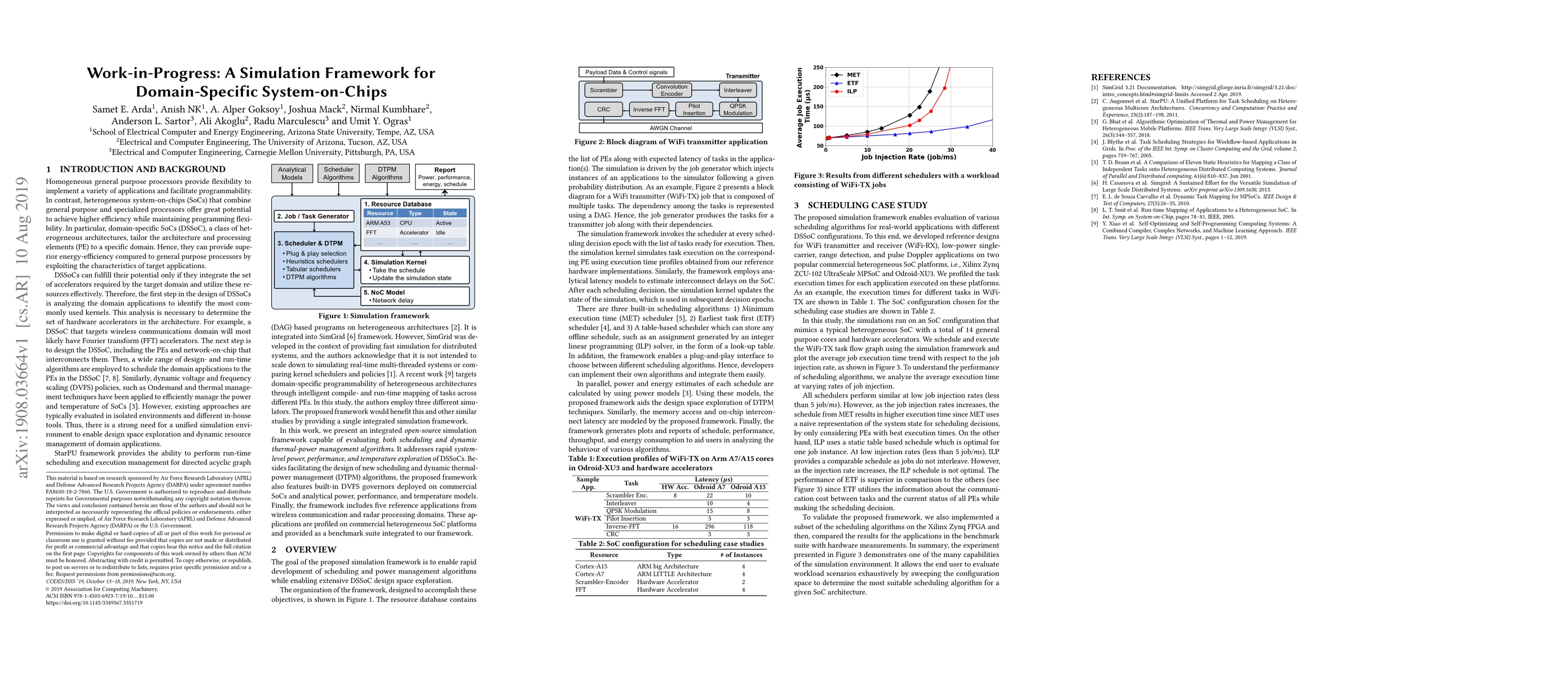 A new simulation framework, DS3, is presented to optimize domain-specific system-on-chips for improved performance and energy efficiency. It achieves a $600 imes$ speedup compared to commonly used simulators, enabling design space exploration and dynamic resource management for power-performance optimization.