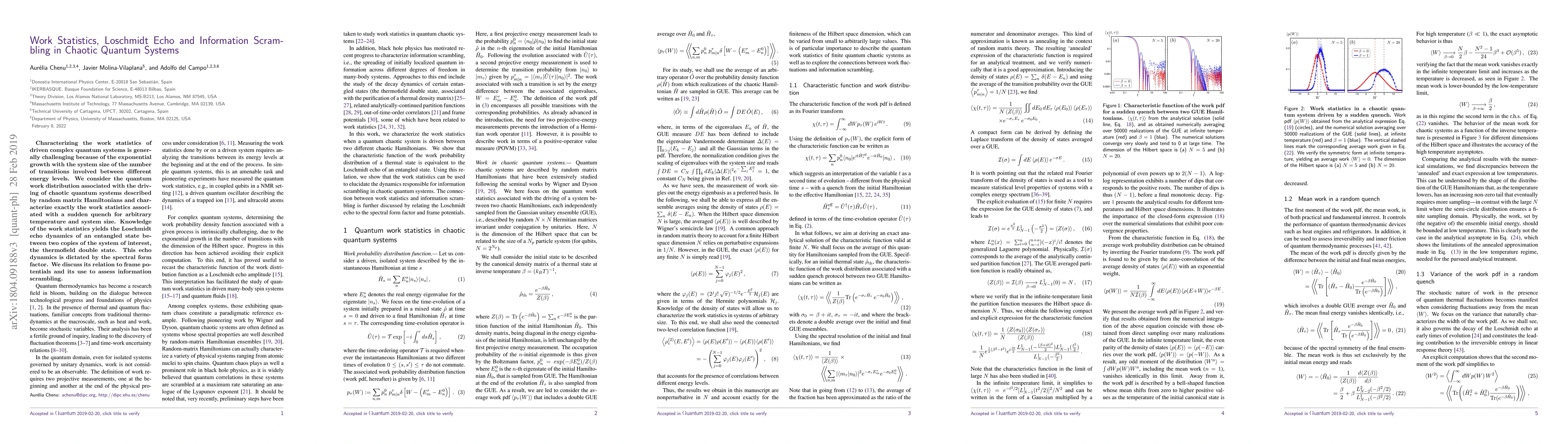 This paper characterizes the quantum work distribution in chaotic quantum systems driven by random matrix Hamiltonians, revealing exact work statistics following a sudden quench. It links these statistics to the Loschmidt echo dynamics and uses the spectral form factor to assess information scrambling.