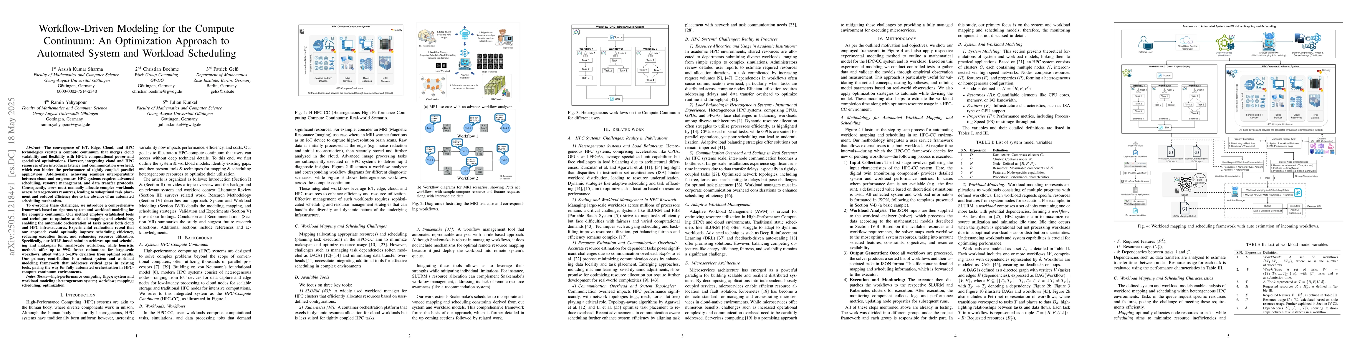 The paper introduces a comprehensive framework based on rigorous system and workload modeling for the compute continuum, employing established tools and techniques to optimize workload mapping and scheduling, enabling automatic orchestration of tasks across cloud and HPC infrastructures.
