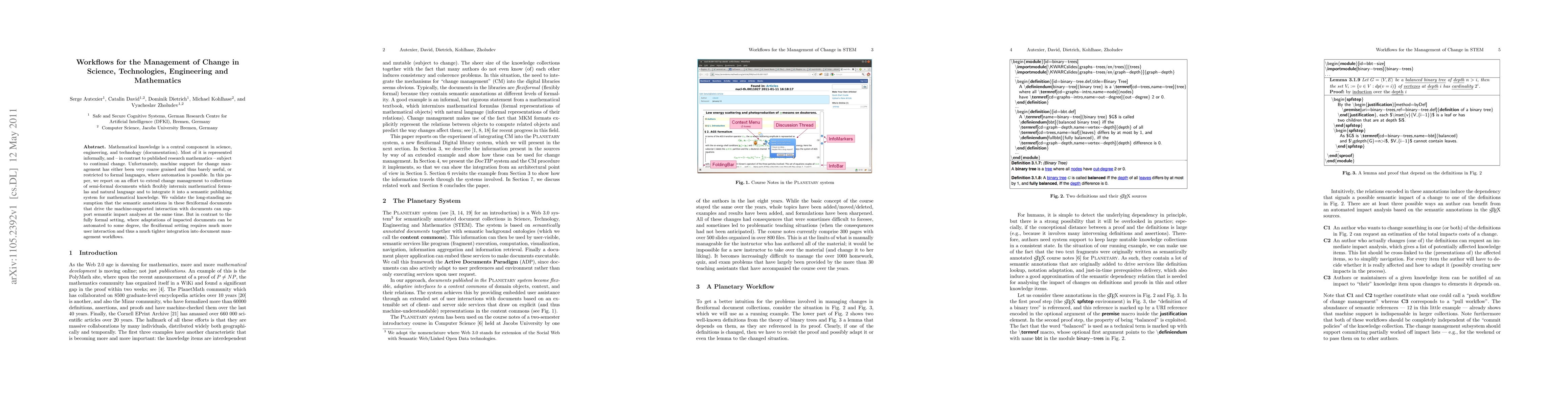 This paper explores extending change management to semi-formal documents combining mathematical and natural language, integrating it within a semantic publishing system. It validates that semantic annotations support impact analyses but emphasizes the need for user interaction in managing changes compared to fully formal settings.