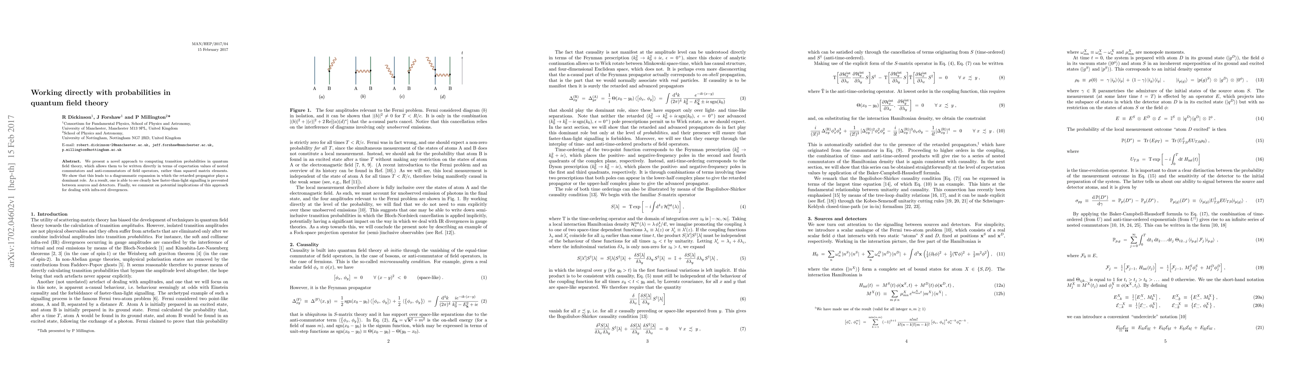 We present a novel approach to computing transition probabilities in quantum field theory, which allows them to be written directly in terms of expectation values of nested commutators and anti-commutators of field operators, rather than squared matrix elements. We show that this leads to a diagrammatic expansion in which the retarded propagator plays a dominant role. As a result, one is able to see clearly how faster-than-light signalling is prevented between sources and detectors. Finally, we comment on potential implications of this approach for dealing with infra-red divergences.