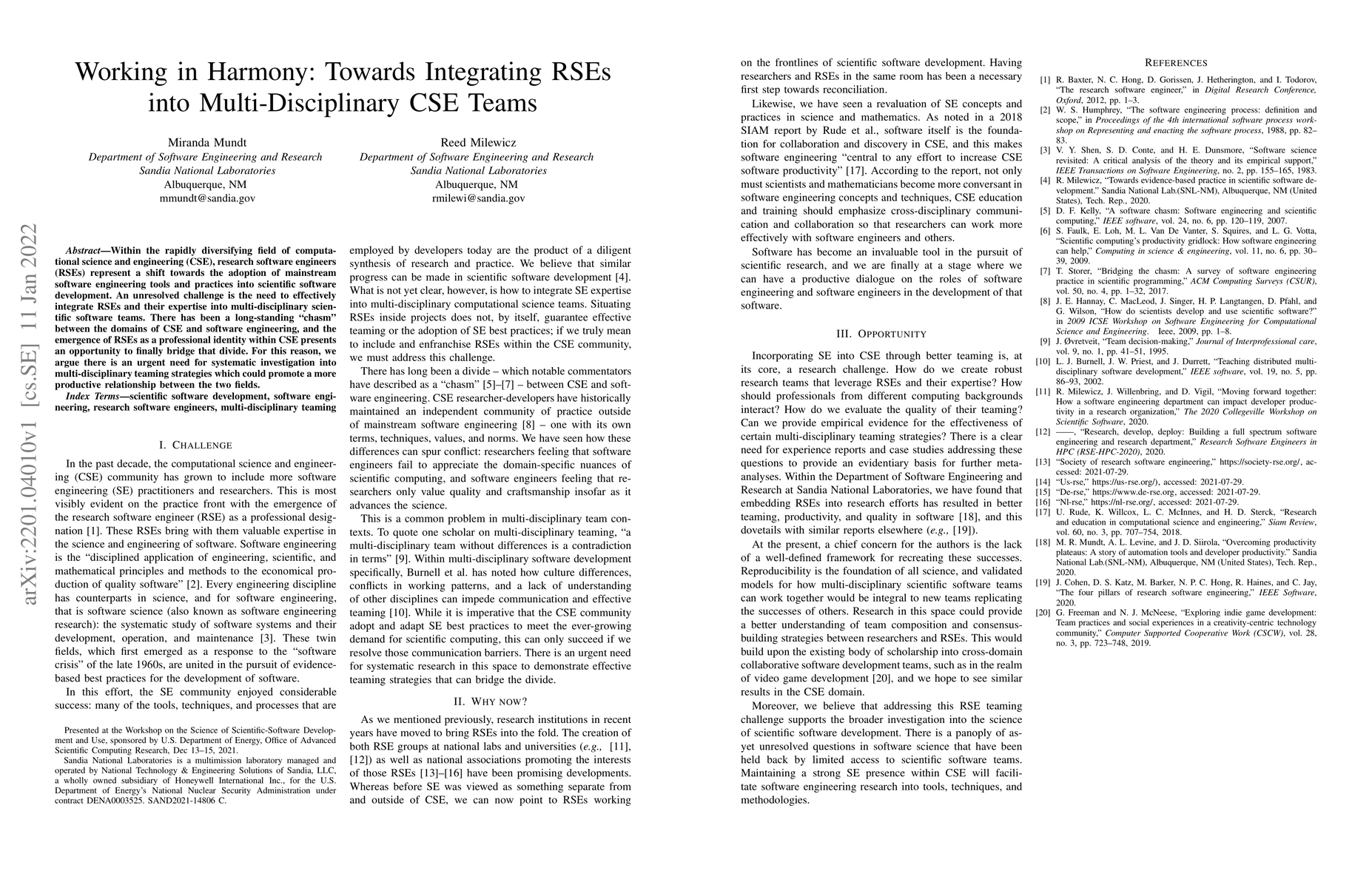 Researchers investigated ways to integrate research software engineers into multi-disciplinary teams in computational science and engineering, aiming to bridge the gap between CSE and software engineering. They found that effective teaming strategies can promote a more productive relationship between these fields.