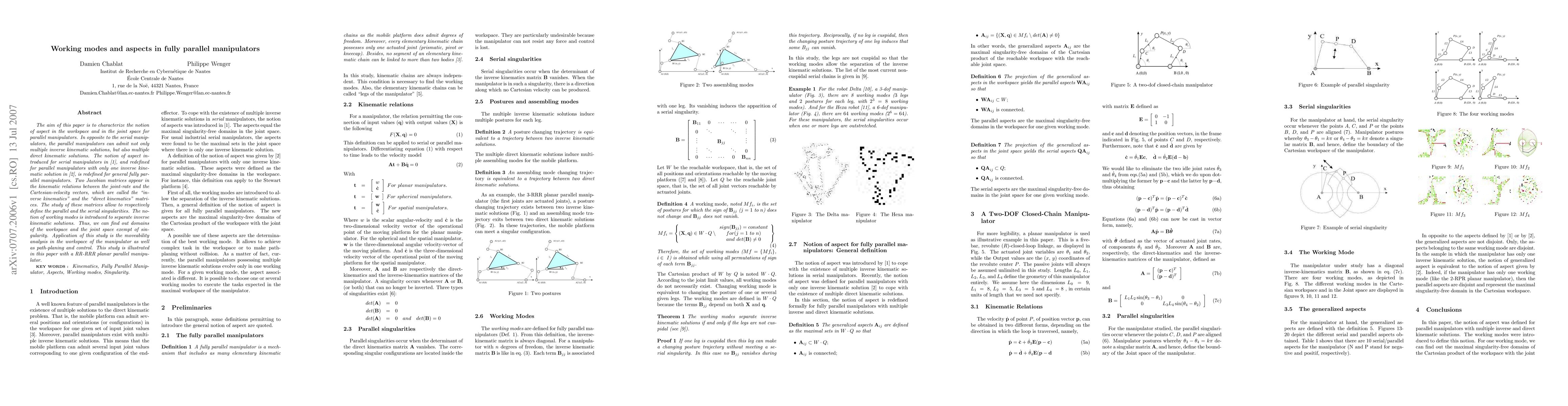 This paper redefines the concept of "aspect" for fully-parallel manipulators, addressing both inverse and direct kinematic solutions, and introduces working modes to distinguish between them. The study aids in identifying singularity-free domains in the workspace and joint space, with applications in moveability analysis, path planning, and control.
