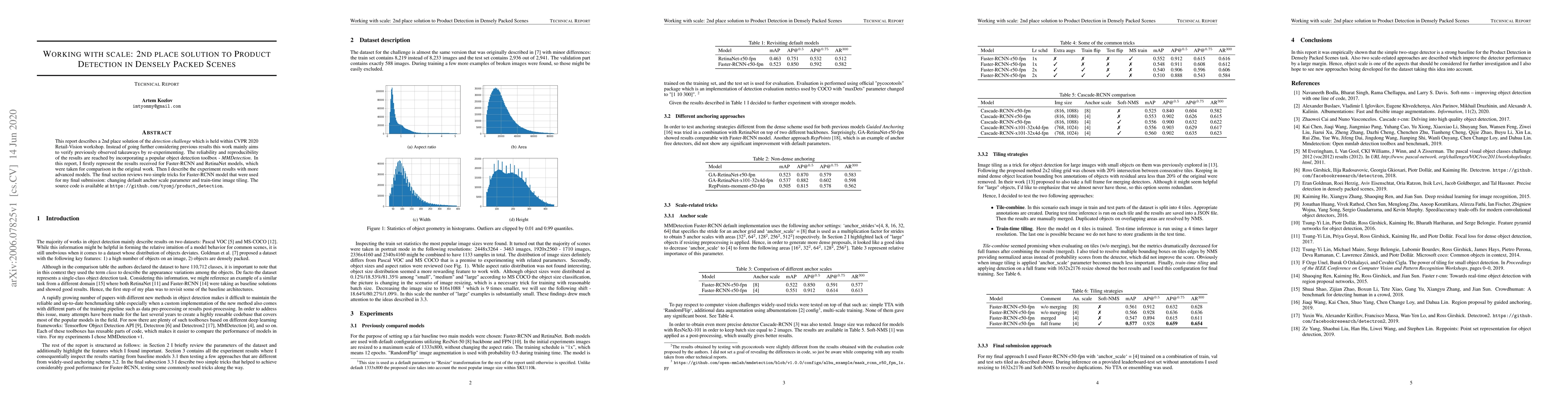This report describes a 2nd place solution of the detection challenge which is held within CVPR 2020 Retail-Vision workshop. Instead of going further considering previous results this work mainly aims to verify previously observed takeaways by re-experimenting. The reliability and reproducibility of the results are reached by incorporating a popular object detection toolbox - MMDetection. In this report, I firstly represent the results received for Faster-RCNN and RetinaNet models, which were taken for comparison in the original work. Then I describe the experiment results with more advanced models. The final section reviews two simple tricks for Faster-RCNN model that were used for my final submission: changing default anchor scale parameter and train-time image tiling. The source code is available at https://github.com/tyomj/product_detection.
