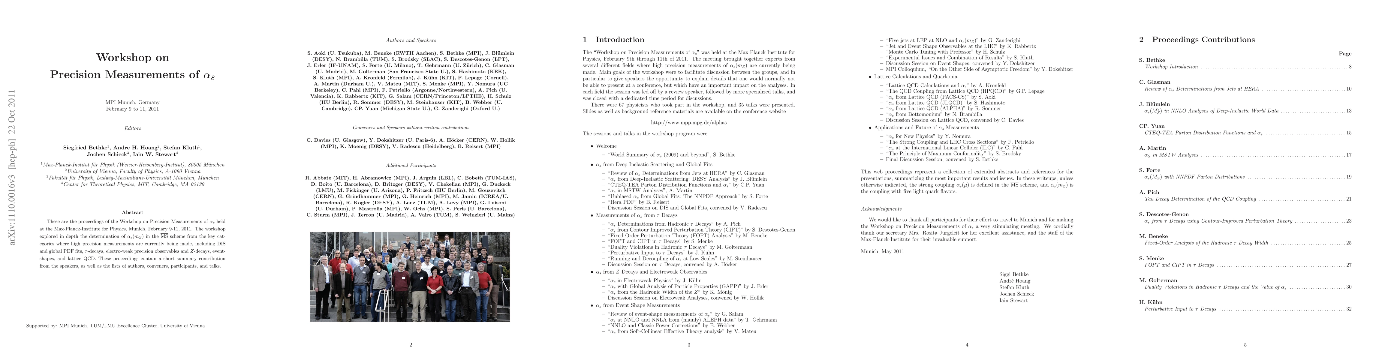 This workshop proceedings from the Max-Planck-Institute for Physics discusses precision measurements of alphas(mZ) in the MS-bar scheme, focusing on high-precision methods from DIS, global PDF fits, tau-decays, electroweak observables, and lattice QCD. It includes summaries from speakers and lists of participants and talks.