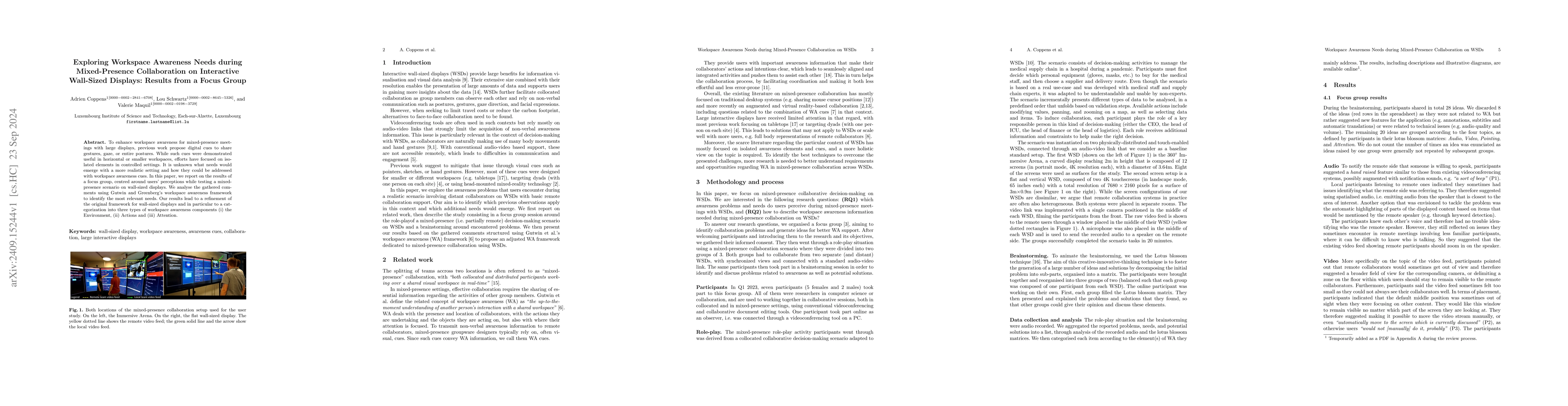 This research investigates users' perceptions of workspace awareness in mixed-presence meetings using wall-sized displays. The study refines Gutwin and Greenberg's framework, identifying three key workspace awareness components: Environment, Actions, and Attention, based on a focus group's feedback during a mixed-presence scenario.