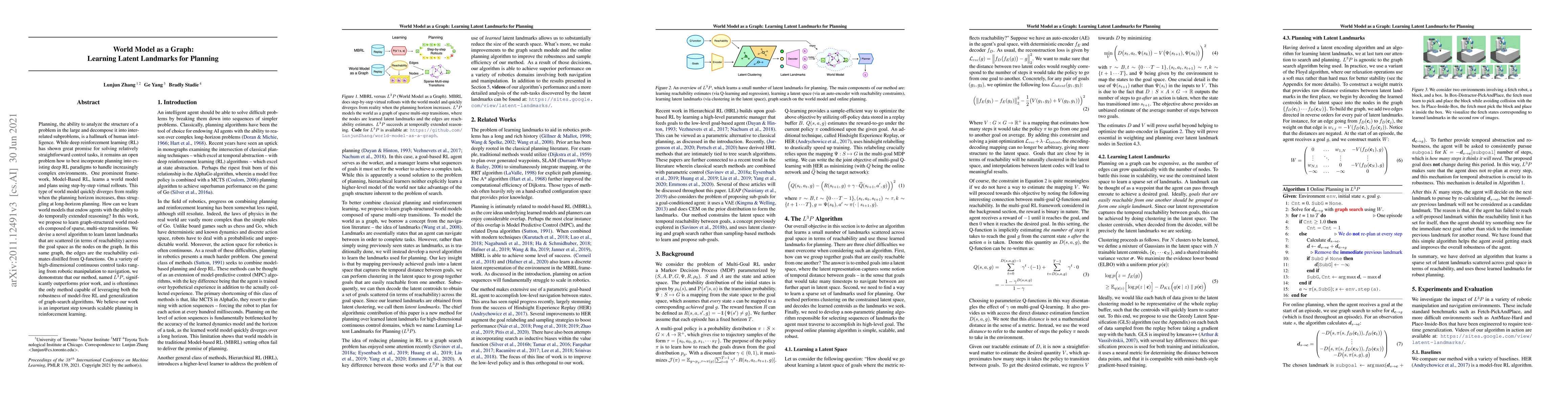 Planning - the ability to analyze the structure of a problem in the large and decompose it into interrelated subproblems - is a hallmark of human intelligence. While deep reinforcement learning (RL) has shown great promise for solving relatively straightforward control tasks, it remains an open problem how to best incorporate planning into existing deep RL paradigms to handle increasingly complex environments. One prominent framework, Model-Based RL, learns a world model and plans using step-by-step virtual rollouts. This type of world model quickly diverges from reality when the planning horizon increases, thus struggling at long-horizon planning. How can we learn world models that endow agents with the ability to do temporally extended reasoning? In this work, we propose to learn graph-structured world models composed of sparse, multi-step transitions. We devise a novel algorithm to learn latent landmarks that are scattered (in terms of reachability) across the goal space as the nodes on the graph. In this same graph, the edges are the reachability estimates distilled from Q-functions. On a variety of high-dimensional continuous control tasks ranging from robotic manipulation to navigation, we demonstrate that our method, named L3P, significantly outperforms prior work, and is oftentimes the only method capable of leveraging both the robustness of model-free RL and generalization of graph-search algorithms. We believe our work is an important step towards scalable planning in reinforcement learning.