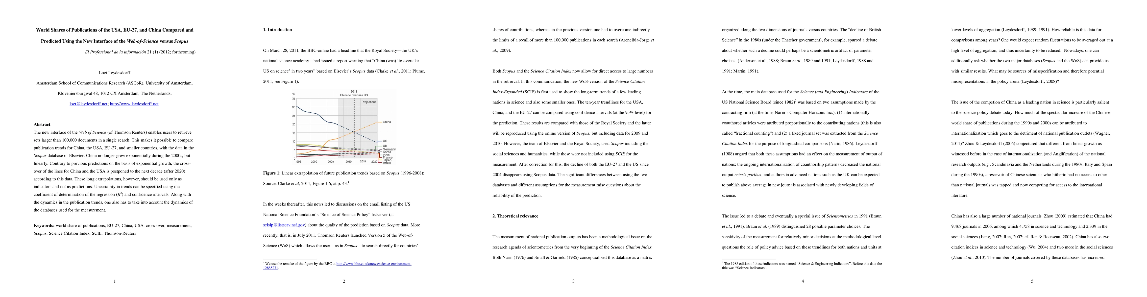 This paper compares and predicts publication trends for China, the USA, and EU-27 using the new Web of Science interface, which allows for larger data retrievals. It finds that China's growth has shifted from exponential to linear, delaying its publication dominance over the USA until after 2020.