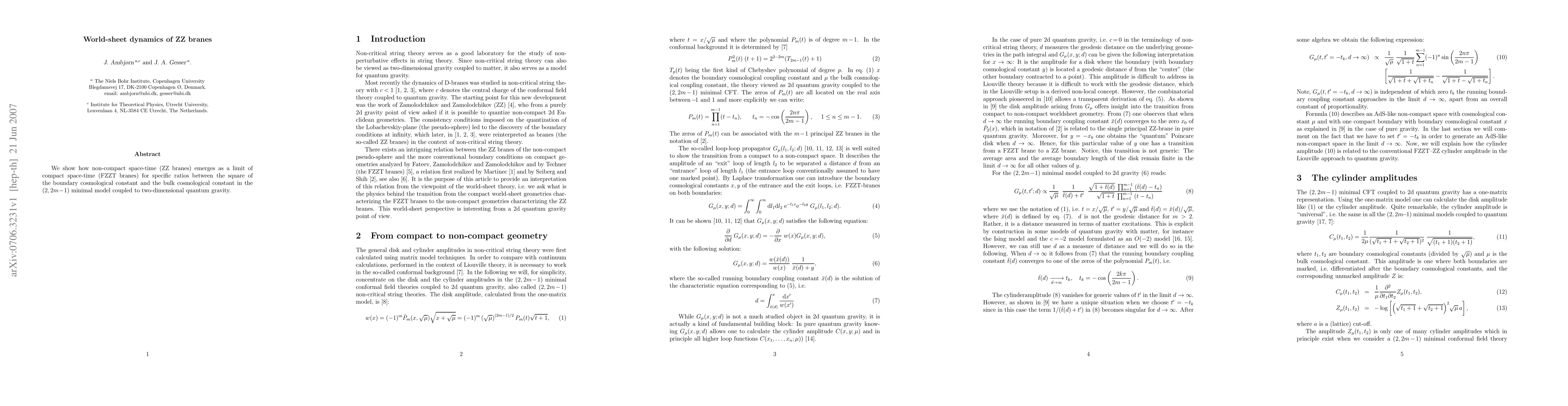 We show how non-compact space-time (ZZ branes) emerges as a limit of compact space-time (FZZT branes) for specific ratios between the square of the boundary cosmological constant and the bulk cosmological constant in the (2,2m-1) minimal model coupled to two-dimensional quantum gravity.