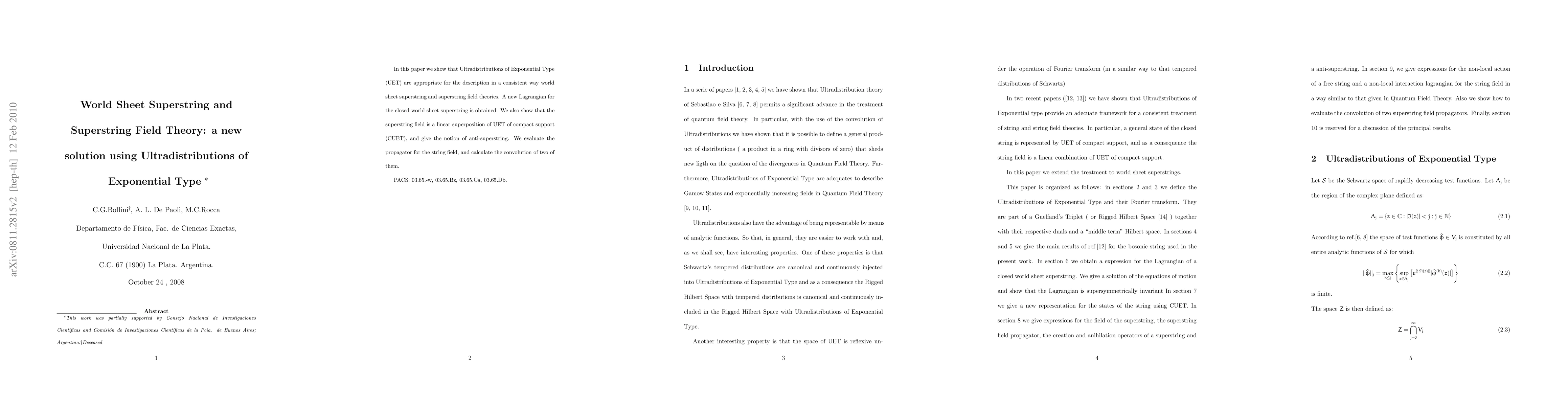 This paper demonstrates that Ultradistributions of Exponential Type (UET) provide a consistent framework for world sheet superstring and superstring field theories, leading to a new Lagrangian for the closed superstring. It also introduces the concept of a superstring field as a linear superposition of UET of compact support and explores the notion of an anti-superstring.