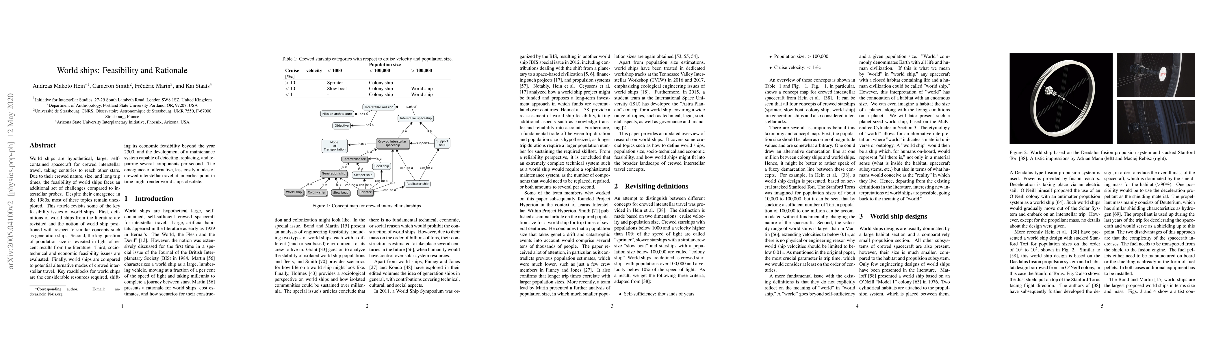 World ships are hypothetical, large, self-contained spacecraft for crewed interstellar travel, taking centuries to reach other stars. Due to their crewed nature, size, and long trip times, the feasibility of world ships faces an additional set of challenges compared to interstellar probes. Despite their emergence in the 1980s, most of these topics remain unexplored. This article revisits some of the key feasibility issues of world ships. First, definitions of world ships from the literature are revisited and the notion of world ship positioned with respect to similar concepts such as generation ships. Second, the key question of population size is revisited in light of recent results from the literature. Third, socio-technical and economic feasibility issues are evaluated. Finally, world ships are compared to potential alternative modes of crewed interstellar travel. Key roadblocks for world ships are the considerable resources required, shifting its economic feasibility beyond the year 2300, and the development of a maintenance system capable of detecting, replacing, and repairing several components per second. The emergence of alternative, less costly modes of crewed interstellar travel at an earlier point in time might render world ships obsolete.
